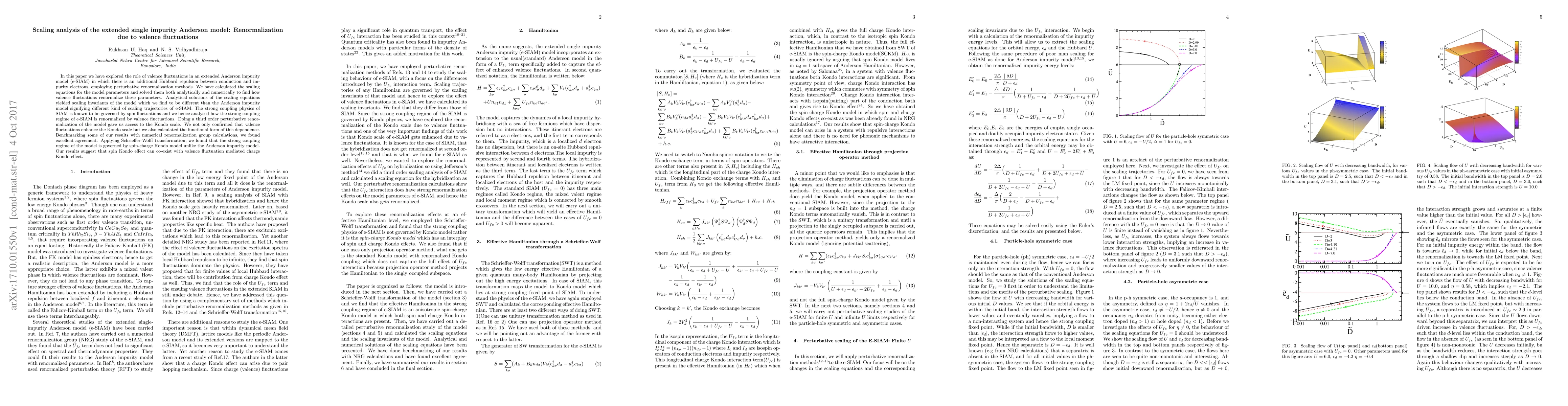 This research investigates the extended single impurity Anderson model (e-SIAM) with Hubbard repulsion, using renormalization methods to explore how valence fluctuations affect model parameters. Analytical and numerical solutions show that valence fluctuations renormalize parameters differently compared to the standard Anderson model, leading to distinct scaling trajectories. The study confirms that valence fluctuations enhance the Kondo scale and reveal a coexistence of spin and charge Kondo effects in the strong coupling regime.
