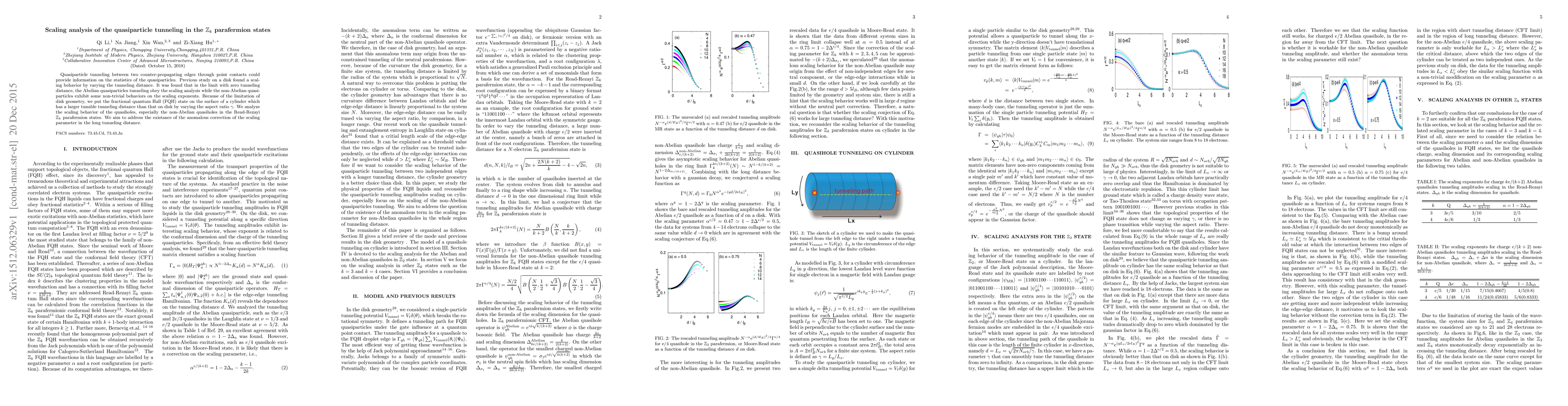 This paper investigates quasiparticle tunneling in ${\mathbb Z}_k$ parafermion states on a cylindrical surface to better understand quasiparticle statistics. It focuses on scaling behavior and anomalous corrections in the tunneling process, particularly for non-Abelian quasiholes in Read-Rezayi states, by varying the tunneling distance through the aspect ratio $\gamma$.