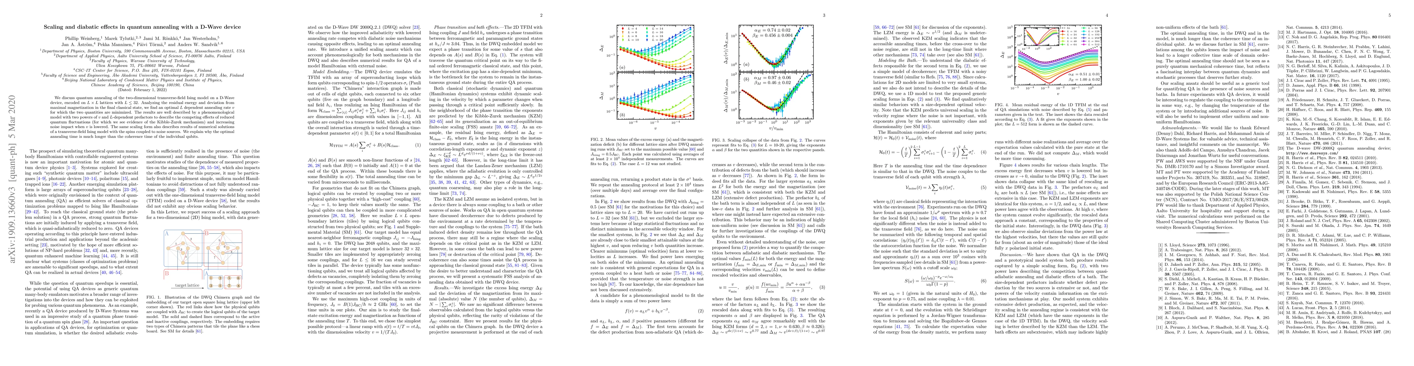 This paper investigates quantum annealing of the two-dimensional transverse-field Ising model on a D-Wave device, finding an optimal annealing rate that minimizes residual energy and deviation from maximal magnetization. The study reveals a scaling form that captures the balance between reduced quantum fluctuations and increased noise, explaining why the optimal annealing time exceeds the coherence time of individual qubits.