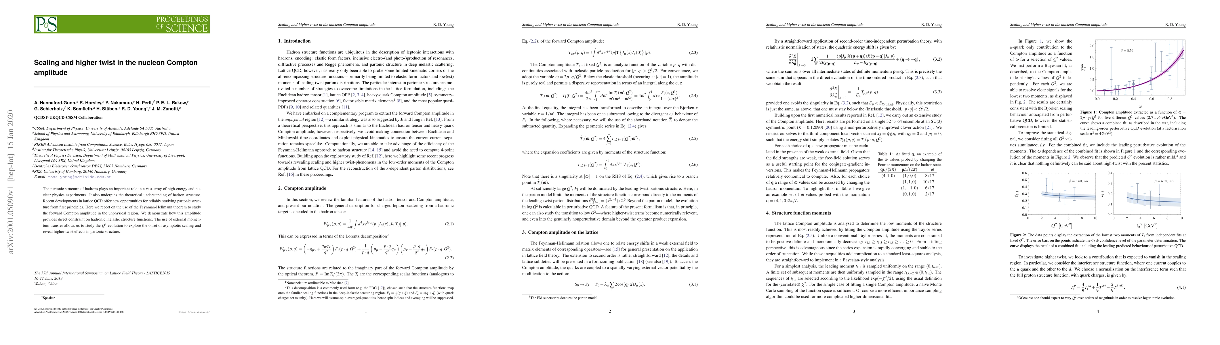 The partonic structure of hadrons plays an important role in a vast array of high-energy and nuclear physics experiments. It also underpins the theoretical understanding of hadron structure. Recent developments in lattice QCD offer new opportunities for reliably studying partonic structure from first principles. Here we report on the use of the Feynman-Hellmann theorem to study the forward Compton amplitude in the unphysical region. We demonstrate how this amplitude provides direct constraint on hadronic inelastic structure functions. The use of external momentum transfer allows us to study the $Q^2$ evolution to explore the onset of asymptotic scaling and reveal higher-twist effects in partonic structure.