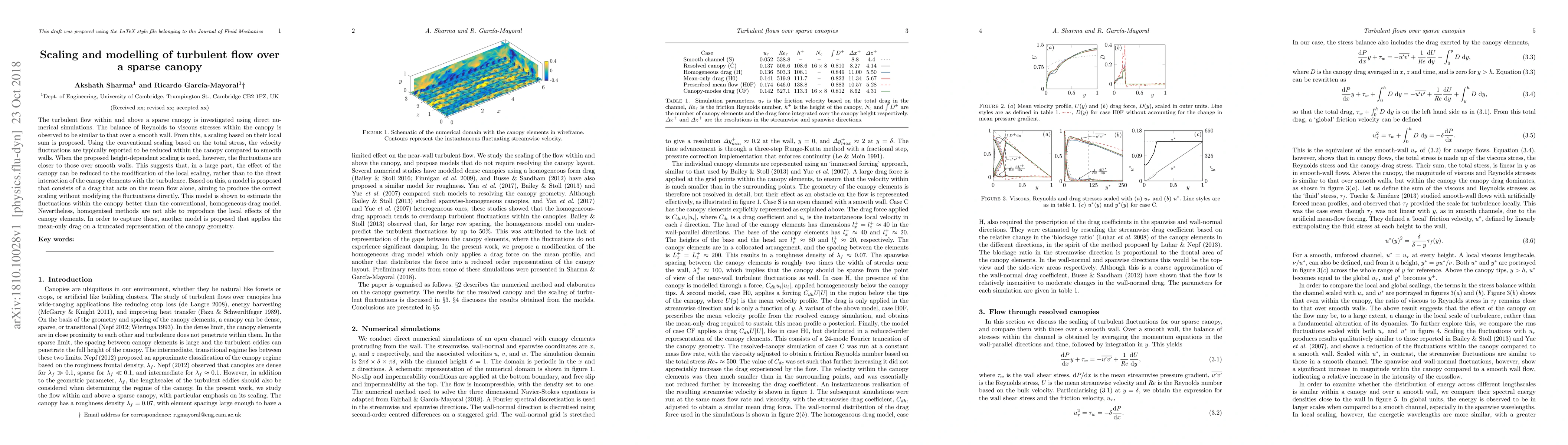 This paper investigates turbulent flow over a sparse canopy using direct numerical simulations, proposing a new height-dependent scaling that better estimates velocity fluctuations compared to conventional methods. It introduces a model featuring a drag that modifies local scaling without altering turbulence directly, outperforming existing models.