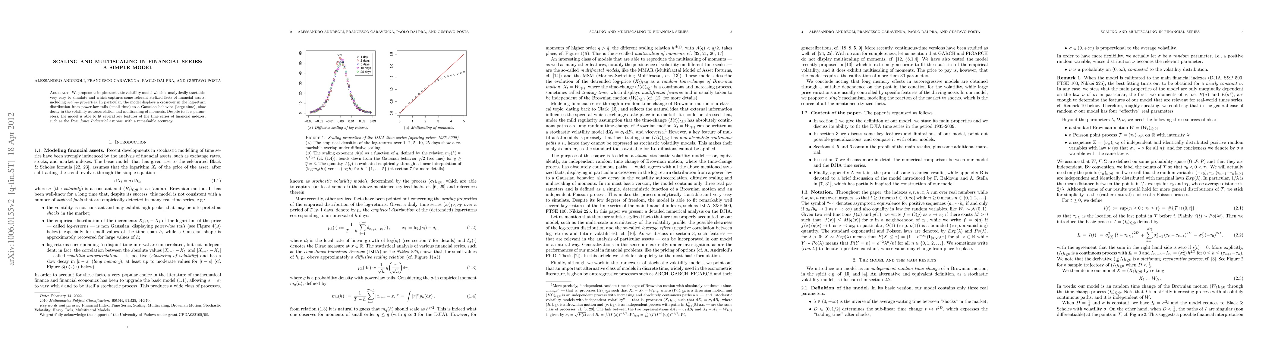 This paper introduces a simple, analytically tractable stochastic volatility model that effectively captures key financial market characteristics, including scaling properties and multiscaling of moments. The model demonstrates a crossover in log-return distribution and fits the time series of financial indexes like the Dow Jones with high accuracy.