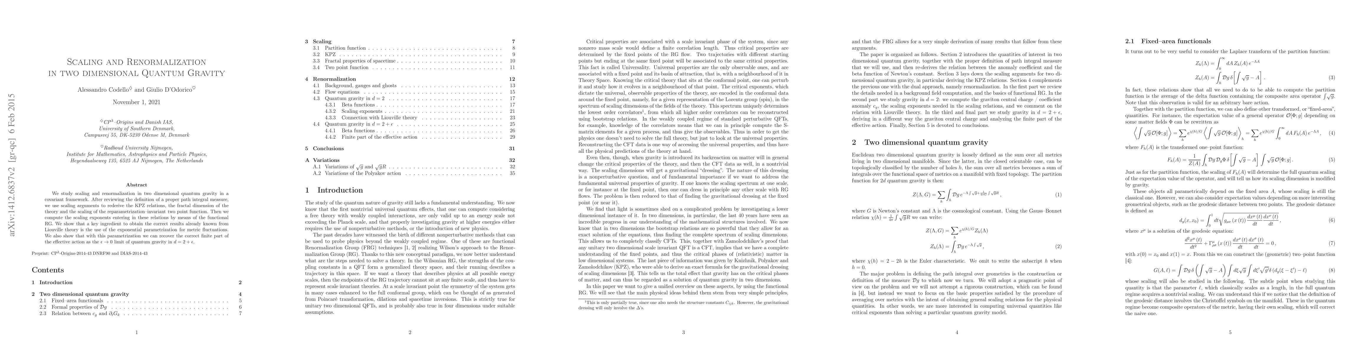 This paper explores scaling and renormalization in two-dimensional quantum gravity within a covariant framework, deriving the KPZ relations and fractal dimension using scaling arguments. It employs the functional renormalization group to compute scaling exponents and demonstrates the importance of the exponential parametrization for metric fluctuations to recover known results from Liouville theory.
