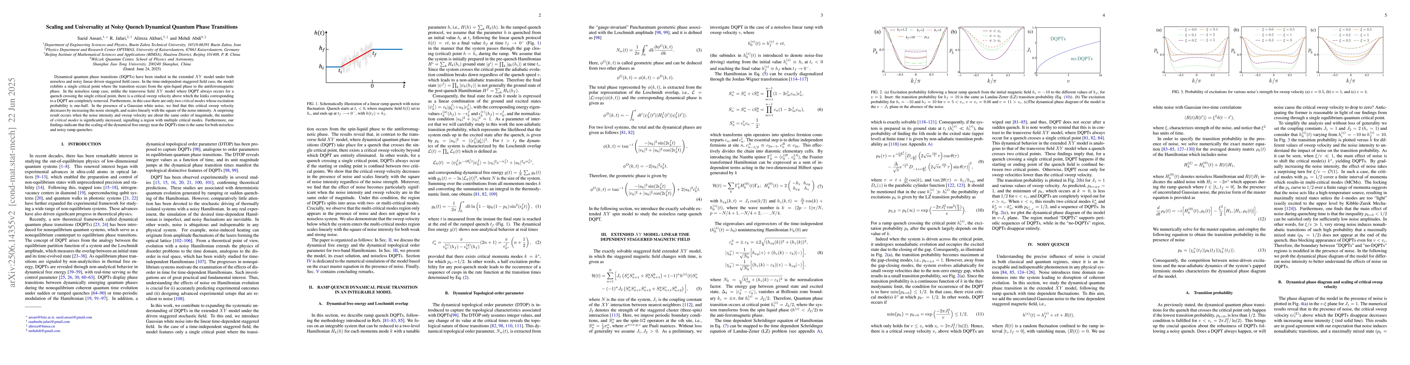Dynamical quantum phase transitions (DQPTs) have been studied in the extended XY model under both noiseless and noisy linear driven staggered field cases. In the time-independent staggered field case, the model exhibits a single critical point where the transition occurs from the spin-liquid phase to the antiferromagnetic phase. In the noiseless ramp case, unlike the transverse field XY model where DQPT always occurs for a quench crossing the single critical point, there is a critical sweep velocity above which the kinks corresponding to a DQPT are completely removed. Furthermore, in this case there are only two critical modes whose excitation probability is one-half. In the presence of a Gaussian white noise, we find that this critical sweep velocity decreases by increasing the noise strength, and scales linearly with the square of the noise intensity. A surprising result occurs when the noise intensity and sweep velocity are about the same order of magnitude, the number of critical modes is significantly increased, signalling a region with multiple critical modes. Furthermore, our findings indicate that the scaling of the dynamical free energy near the DQPTs time is the same for both noiseless and noisy ramp quenches.