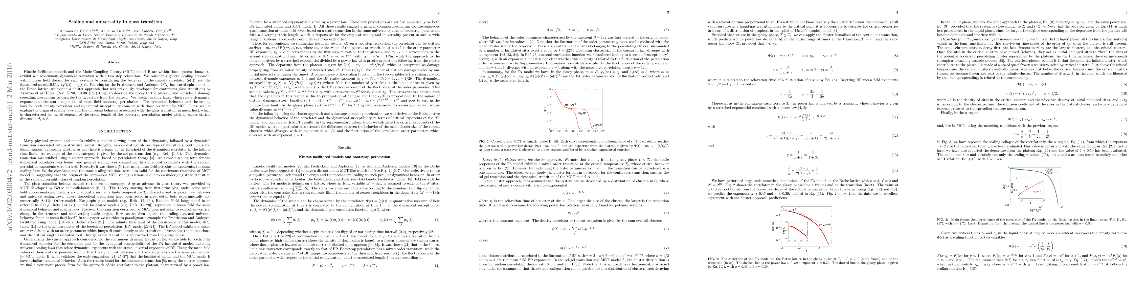 This research paper explores scaling laws and universality in glass transitions using mean field theory, finding predictions that coincide with Mode Coupling Theory and explaining the origin of universal behavior in glassy systems.