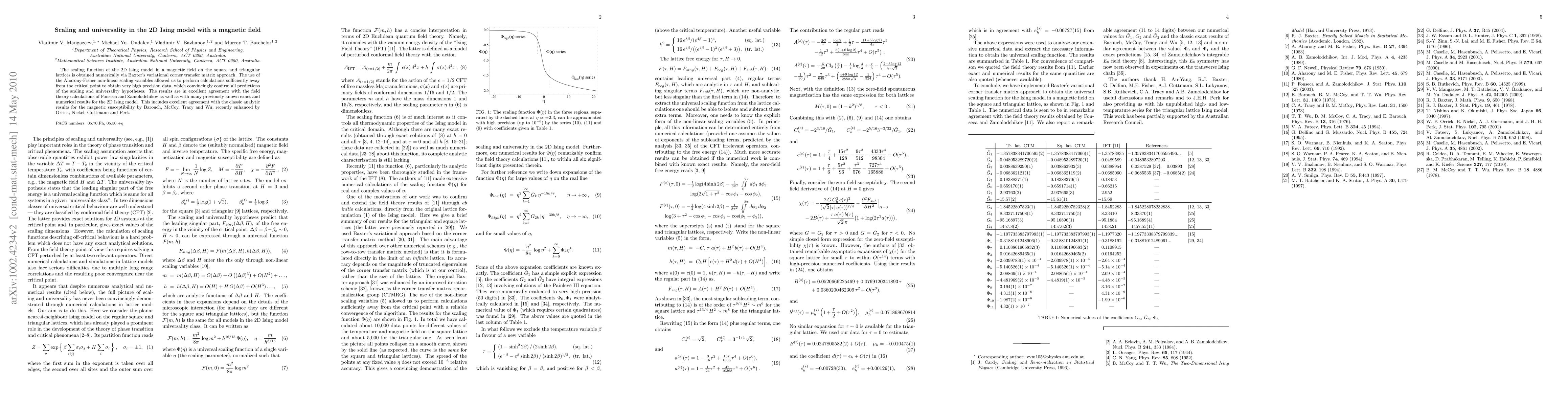 This paper numerically determines the scaling function for the 2D Ising model in a magnetic field using Baxter's approach, confirming predictions of scaling and universality with high precision. Results align well with field theory calculations and previous exact and numerical studies.