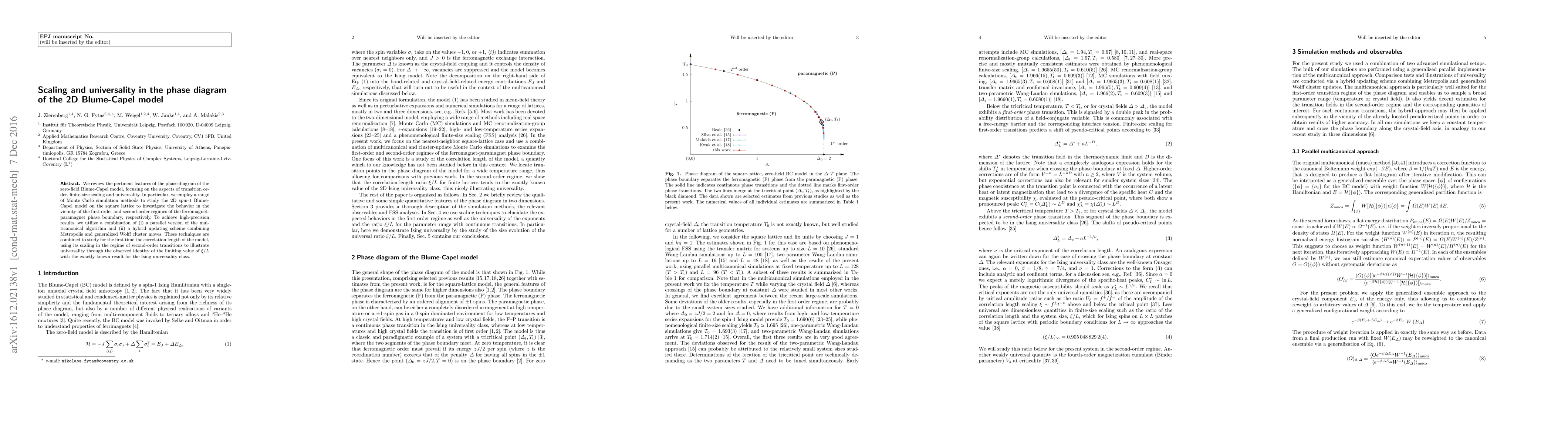 This paper reviews the phase diagram of the 2D Blume-Capel model, emphasizing transition order, finite-size scaling, and universality. Using Monte Carlo simulations and advanced algorithms, it investigates the ferromagnet-paramagnet boundary, revealing the correlation length and confirming universality by matching the scaling behavior to the Ising model.
