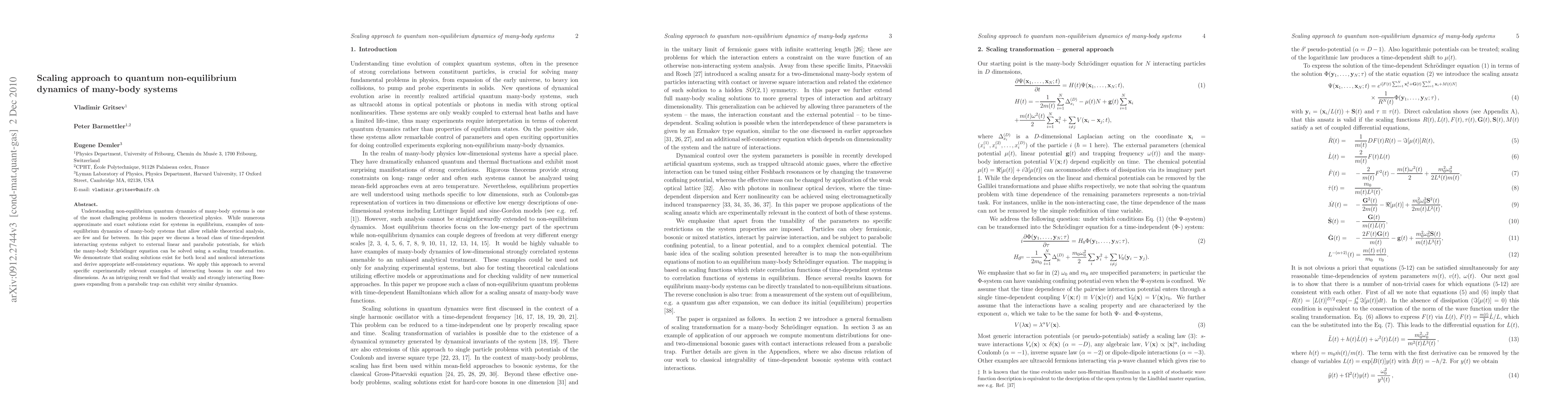 This paper introduces a scaling approach to solve the many-body Schrödinger equation for non-equilibrium quantum dynamics under external potentials, demonstrating its applicability to both local and nonlocal interactions. The method reveals similar dynamics in weakly and strongly interacting Bose-gases expanding from a parabolic trap.