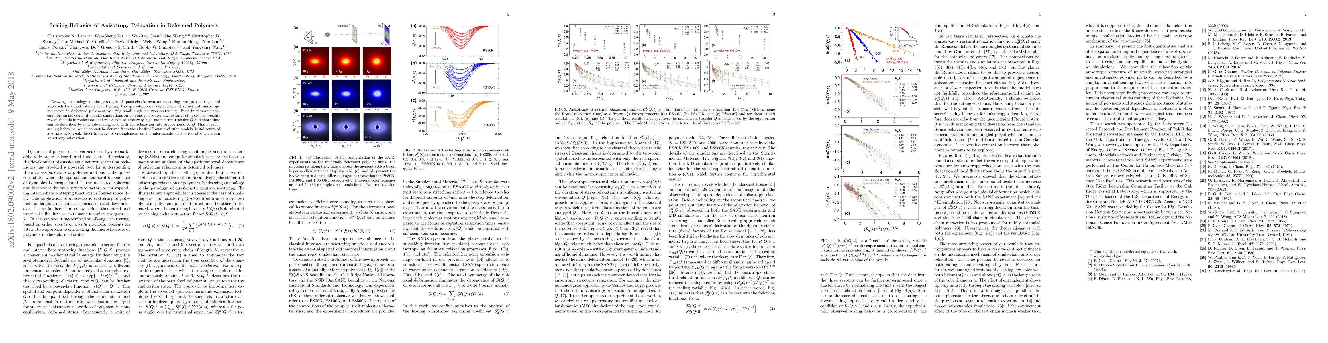 This study employs small-angle neutron scattering to investigate the anisotropy relaxation in deformed polymers, revealing a scaling law where the relaxation rate is proportional to momentum transfer $Q$. This behavior, distinct from classical models, suggests a minimal entanglement effect on single-chain anisotropy relaxation.