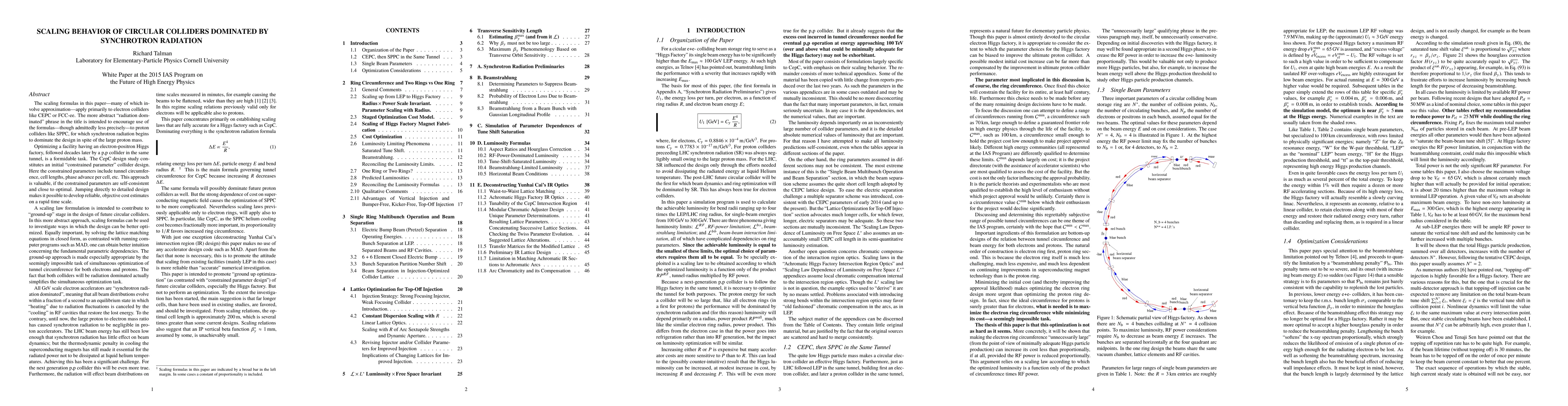 The quite low Higgs particle mass makes it natural for the next high energy facility to be a circular e+e- Higgs factory and, after that, a next-generation p,p collider in the same tunnel. Surveying the luminosity-limiting phenomena of synchrotron radiation power loss, beam-beam interaction limitations, and beamstrahlung, scaling laws are established that fix all parameters of the Higgs factory, as functions of assumed radius $r$, and RF power $P$. at least to a first approximation. Historically the accelerator formalisms of electron and hadron rings have been distinguished largely by the importance of synchrotron radiation for electrons, and its unimportance for protons. While electron beams equilibrate within seconds, proton beam distributions have survived largely intact for extended periods. For future hadron colliders, this distinction will no longer be valid. This will have a large impact on the design of the future FCC-pp proton collider whose parameters can be extrapolated using formulas previously applicable only to electron rings. The most important scaling law has the luminosity depending on $r$ and $P_{\rm rf}$ only as a function of their product $rP$. This relation simplifies choosing a tunnel radius that is optimal for both Higgs factory and p,p collider while (almost) minimizing the initial cost---by increasing $r$ and decreasing $P$ proportionally, the tunnel circumference can be increased (as required for p,p) without significant increase in Higgs factory cost.
