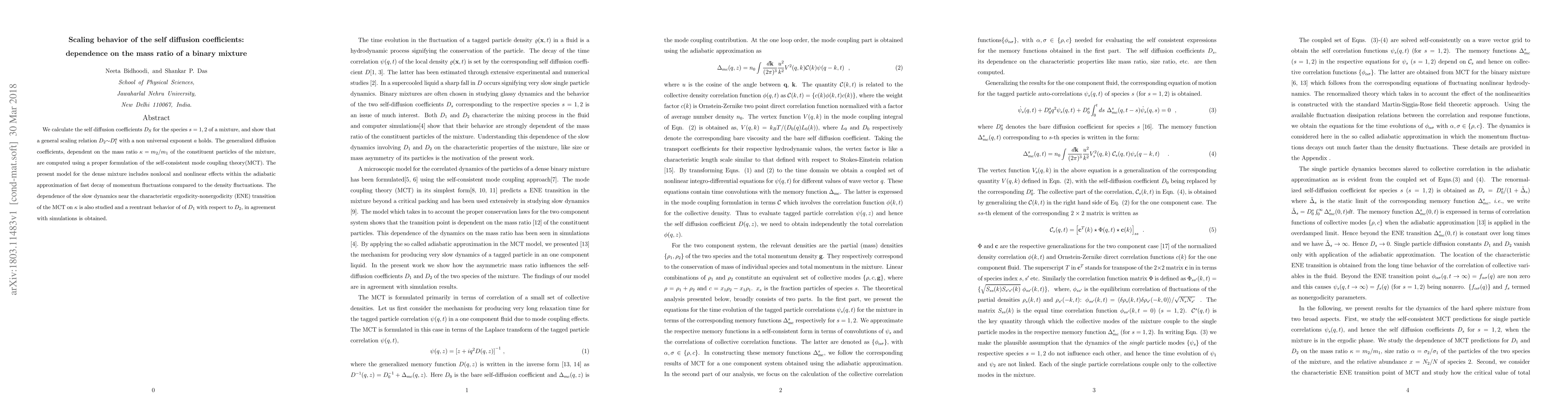 Researchers found a general scaling relation between the self diffusion coefficients of two species in a binary mixture, with the coefficient dependent on the mass ratio of the components. The study used the self-consistent mode coupling theory to model the behavior of the mixture.