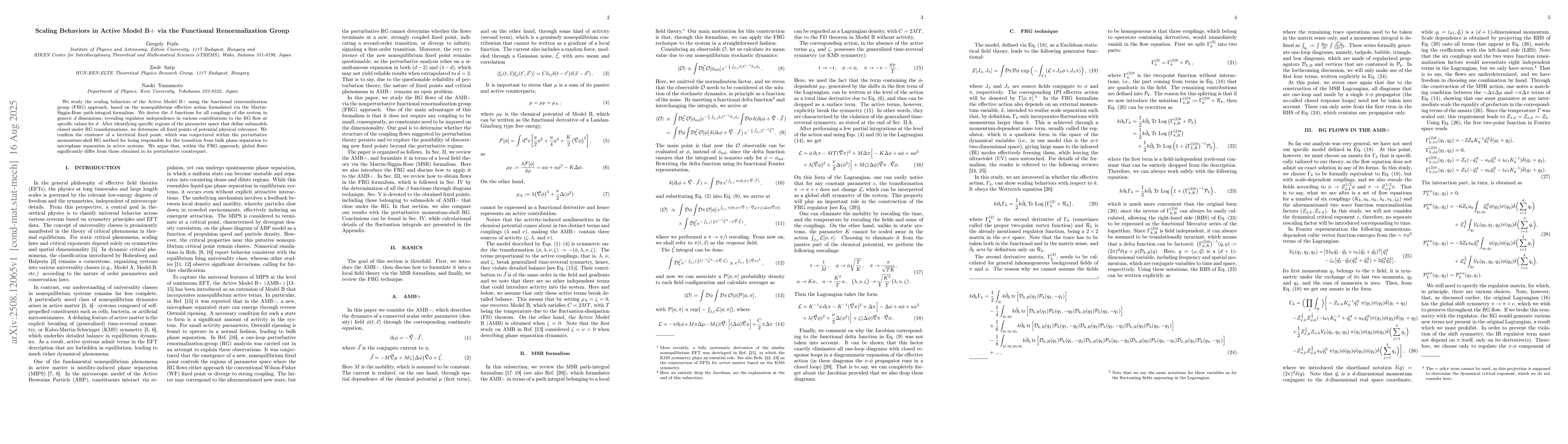 We study the scaling behaviors of the Active Model B+ using the functional renormalization group (FRG) approach, based on the nonequilibrium effective action formulated via the Martin-Siggia-Rose path-integral formalism. We derive the $\beta$ functions for all couplings of the system in generic $d$ dimensions, revealing regulator independence in various contributions to the RG flow at specific values for $d$. After identifying specific regions of the parameter space that define submodels closed under RG transformations, we determine all fixed points of potential physical relevance. We confirm the existence of a bicritical fixed point, which was conjectured within the perturbative momentum-shell RG method for being responsible for the transition from bulk phase separation to microphase separation in active systems. We argue that, within the FRG approach, global flows significantly differ from those obtained in its perturbative counterpart.