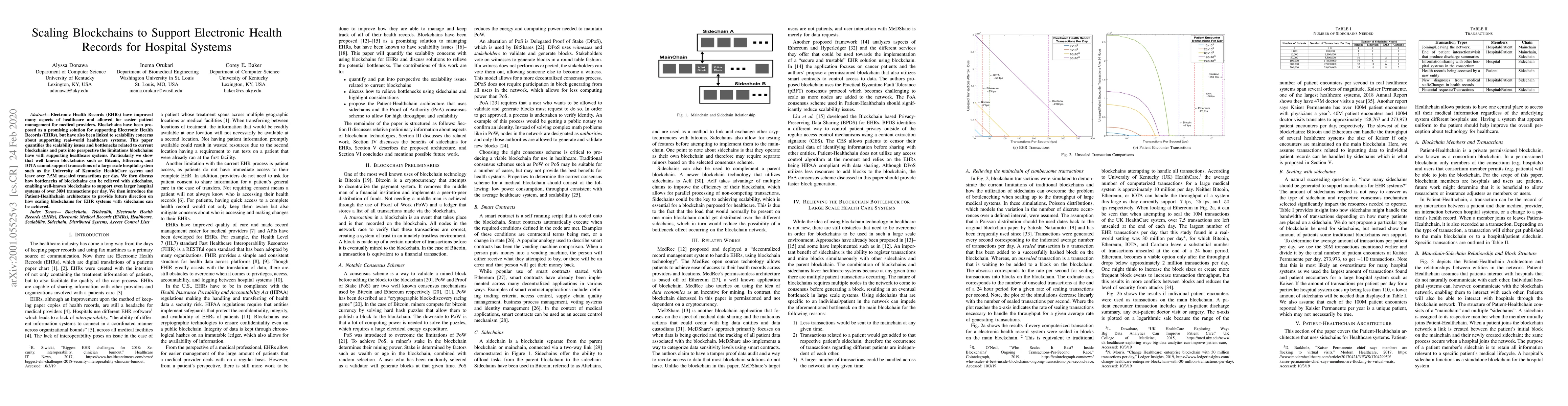 Electronic Health Records (EHRs) have improved many aspects of healthcare and allowed for easier patient management for medical providers. Blockchains have been proposed as a promising solution for supporting Electronic Health Records (EHRs), but have also been linked to scalability concerns about supporting real-world healthcare systems. This paper quantifies the scalability issues and bottlenecks related to current blockchains and puts into perspective the limitations blockchains have with supporting healthcare systems. Particularly we show that well known blockchains such as Bitcoin, Ethereum, and IOTA cannot support transactions of a large scale hospital system such as the University of Kentucky HealthCare system and leave over 7.5M unsealed transactions per day. We then discuss how bottlenecks of blockchains can be relieved with sidechains, enabling well-known blockchains to support even larger hospital systems of over 30M transactions per day. We then introduce the Patient-Healthchain architecture to provide future direction on how scaling blockchains for EHR systems with sidechains can be achieved.