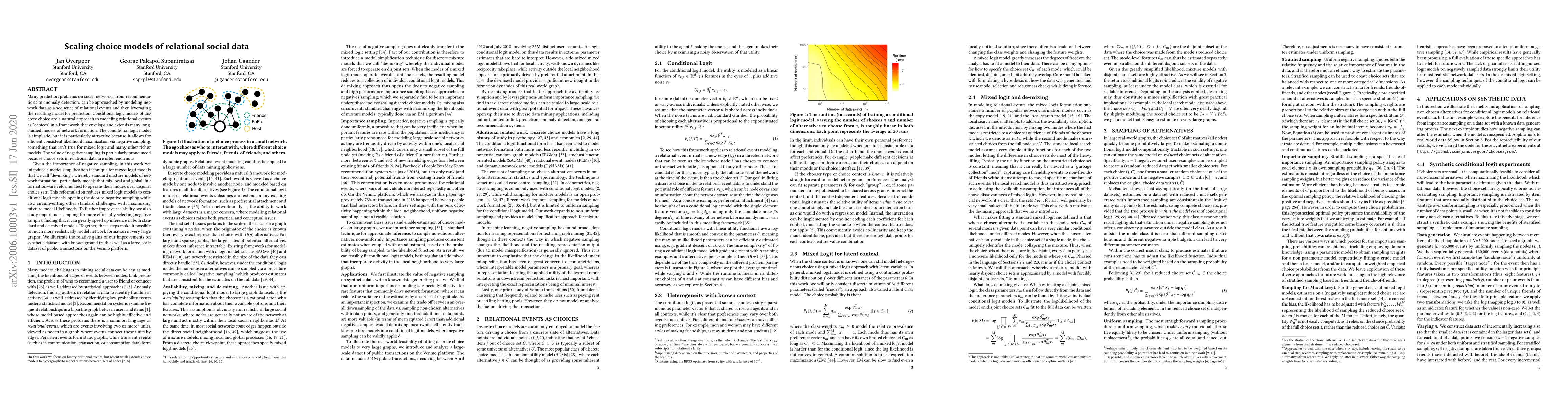 This paper proposes a "de-mixing" technique to reformulate mixed logit models into conditional logit models, enabling efficient negative sampling for large relational social data. It also introduces importance sampling to further enhance scalability, demonstrating significant improvements on both synthetic and real-world datasets.
