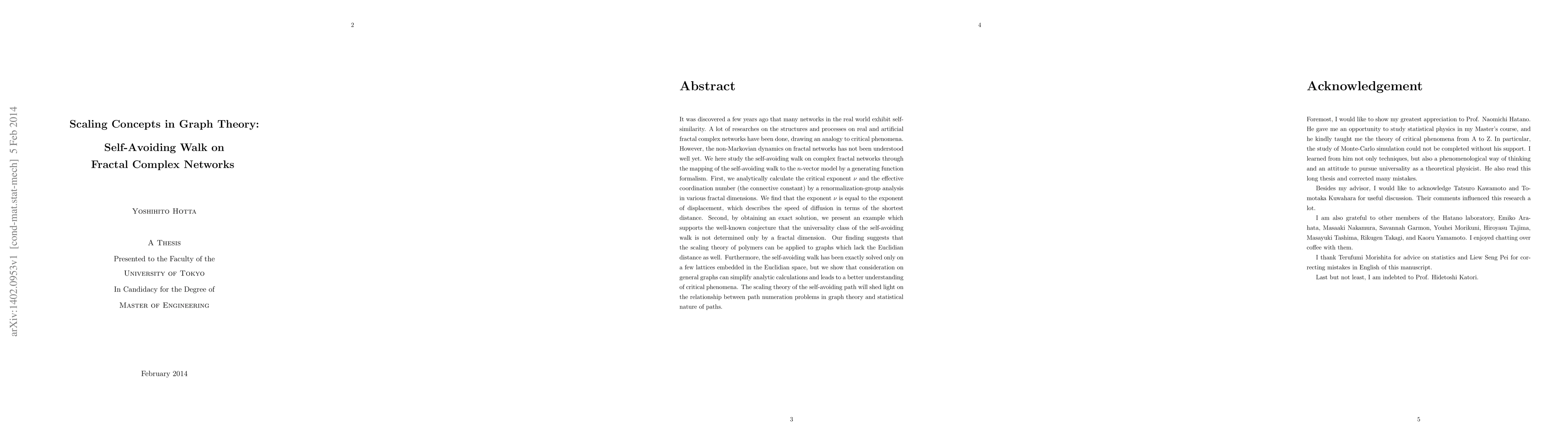 This paper investigates self-avoiding walks on fractal complex networks, mapping them to the n-vector model using a generating function. It analytically calculates the critical exponent and effective coordination number via renormalization-group analysis, revealing that the scaling theory of polymers applies to non-Euclidean graphs, enhancing understanding of critical phenomena.