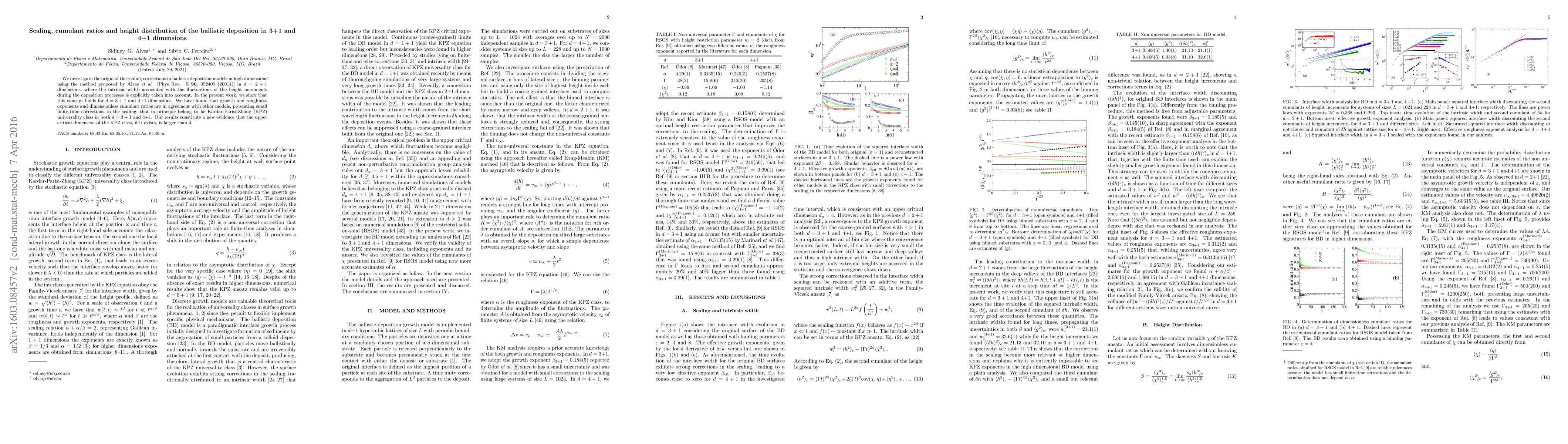 This paper explores scaling corrections in ballistic deposition models across dimensions, confirming that the scaling behavior observed in 2+1 dimensions extends to 3+1 and 4+1 dimensions, aligning with the Kardar-Parisi-Zhang universality class and suggesting the upper critical dimension for this class may exceed 4.