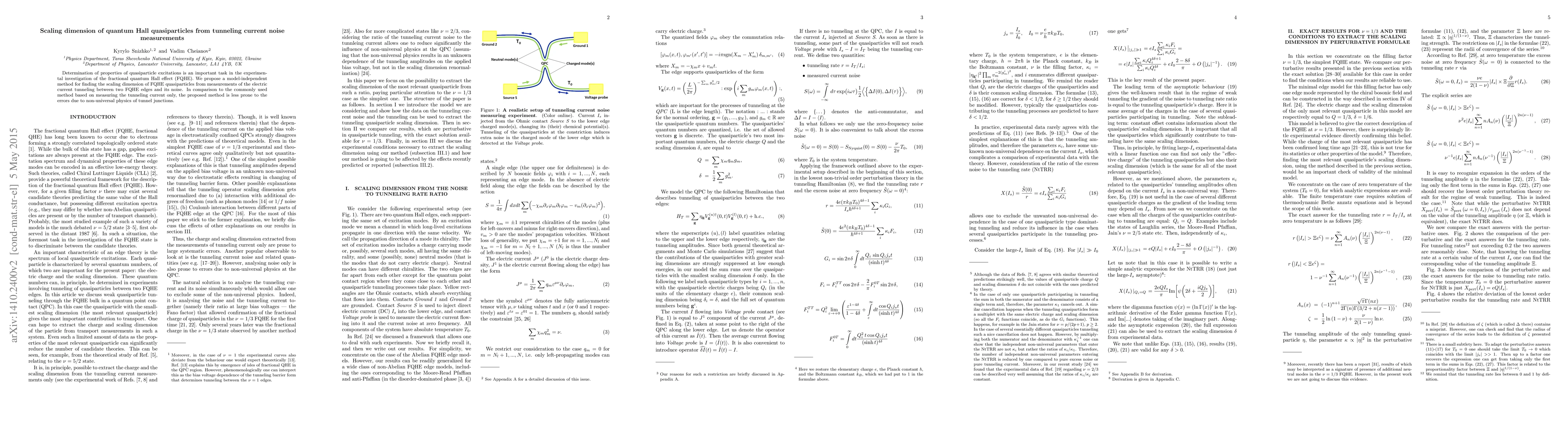 This paper proposes a novel method to determine the scaling dimension of quasiparticles in the fractional quantum Hall effect using tunneling current noise measurements, which is less susceptible to errors from tunnel junction non-universalities compared to traditional current-only measurements.