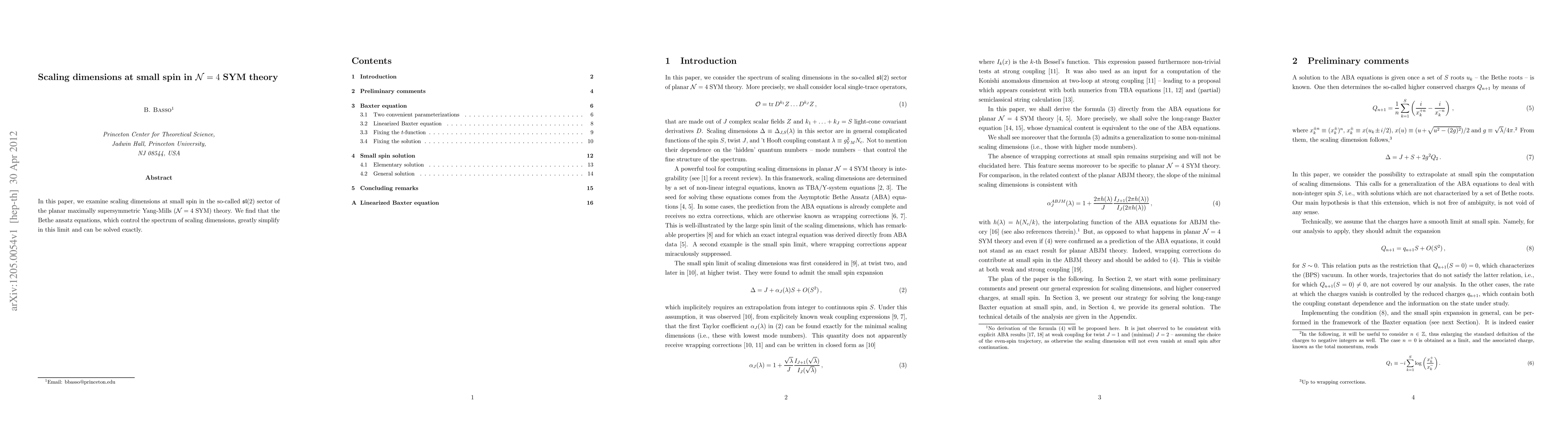 In this paper, we examine scaling dimensions at small spin in the so-called sl(2) sector of the planar maximally supersymmetric Yang-Mills theory. We find that the Bethe ansatz equations, which control the spectrum of scaling dimensions, greatly simplify in this limit and can be solved exactly.