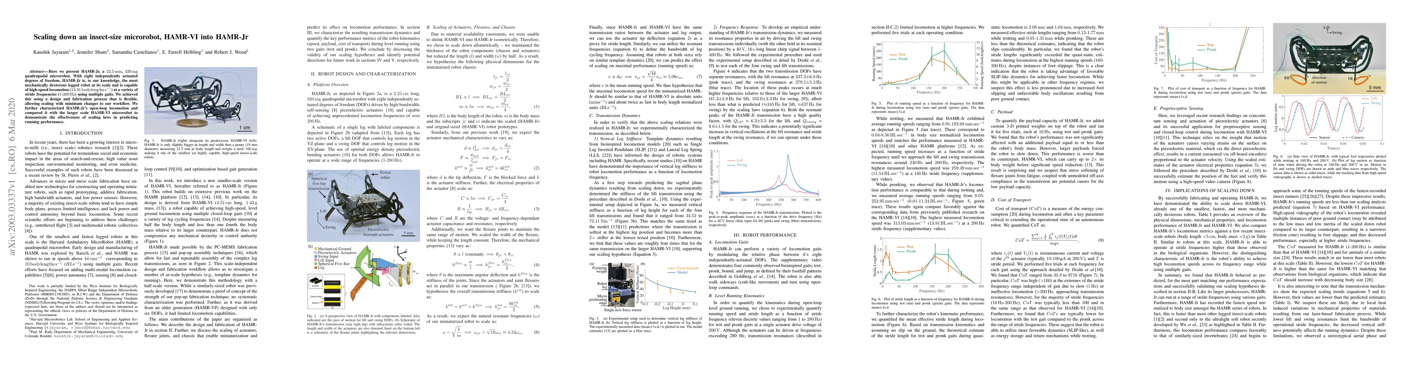 This paper introduces HAMR-Jr, a miniature quadrupedal microrobot measuring 22.5 mm and weighing 320 mg, featuring eight independently actuated degrees of freedom and high-speed locomotion capabilities. The study demonstrates the effectiveness of scaling laws in predicting performance by comparing HAMR-Jr to its larger counterpart, HAMR-VI.