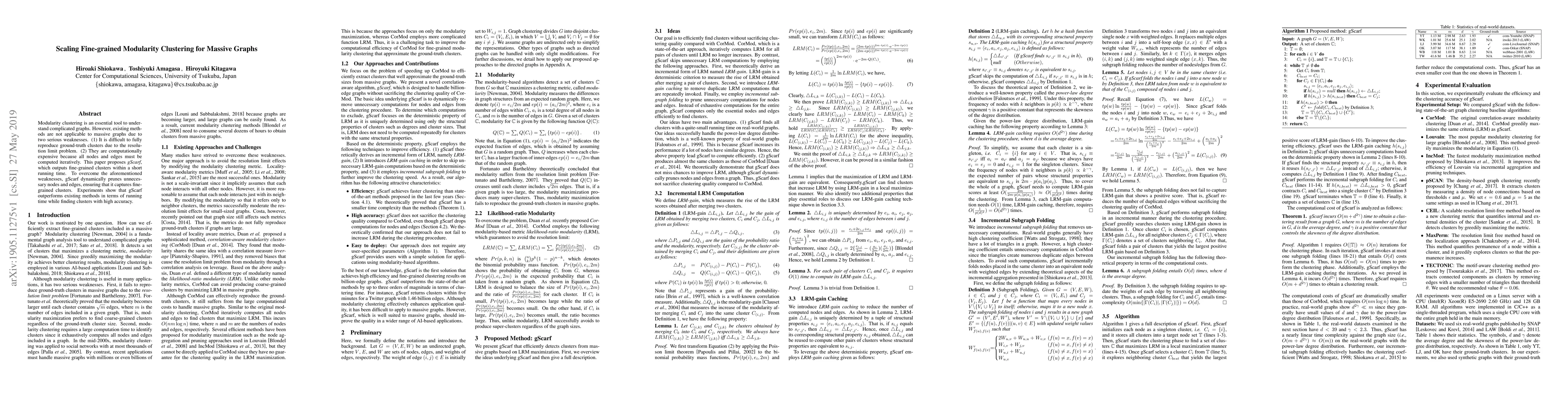 Modularity clustering is an essential tool to understand complicated graphs. However, existing methods are not applicable to massive graphs due to two serious weaknesses. (1) It is difficult to fully reproduce ground-truth clusters due to the resolution limit problem. (2) They are computationally expensive because all nodes and edges must be computed iteratively. This paper proposes gScarf, which outputs fine-grained clusters within a short running time. To overcome the aforementioned weaknesses, gScarf dynamically prunes unnecessary nodes and edges, ensuring that it captures fine-grained clusters. Experiments show that gScarf outperforms existing methods in terms of running time while finding clusters with high accuracy.