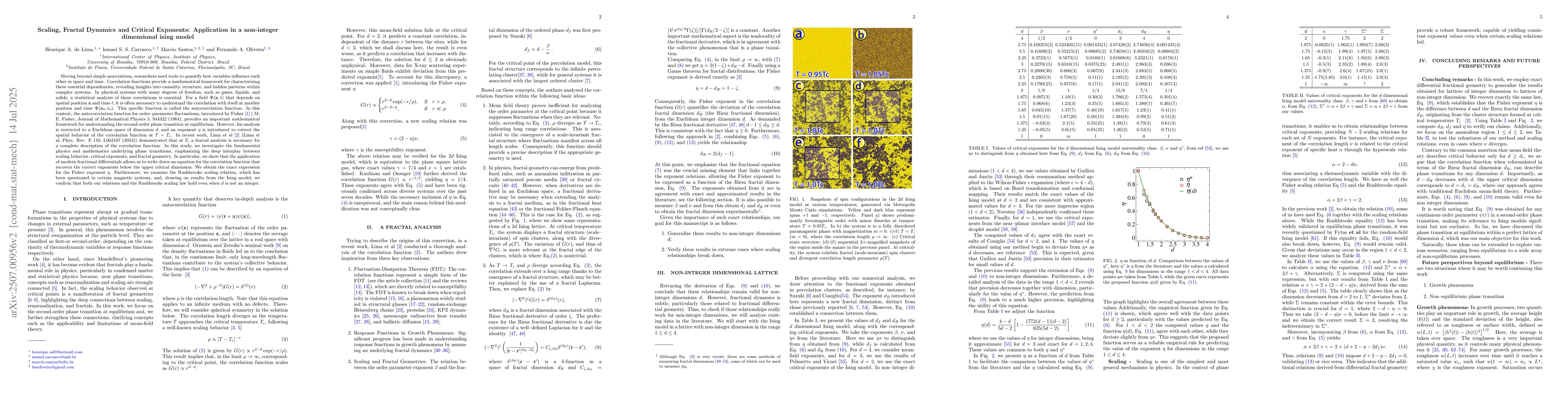 Moving beyond simple associations, researchers need tools to quantify how variables influence each other in space and time. Correlation functions provide a mathematical framework for characterizing these essential dependencies, revealing insights into causality, structure, and hidden patterns within complex systems. In physical systems with many degrees of freedom, such as gases, liquids, and solids, a statistical analysis of these correlations is essential. For a field $\Psi(\vec{x},t)$ that depends on spatial position $\vec{x}$ and time $t$, it is often necessary to understand the correlation with itself at another position and time $\Psi(\vec{x}_0,t_0)$. This specific function is called the autocorrelation function. In this context, the autocorrelation function for order--parameter fluctuations, introduced by Fisher, provides an important mathematical framework for understanding the second-order phase transition at equilibrium. However, his analysis is restricted to a Euclidean space of dimension $d$, and an exponent $\eta$ is introduced to correct the spatial behavior of the correlation function at $T=T_c$. In recent work, Lima et al demonstrated that at $T_c$ a fractal analysis is necessary for a complete description of the correlation function. In this study, we investigate the fundamental physics and mathematics underlying phase transitions. In particular, we show that the application of modern fractional differentials allows us to write down an equation for the correlation function that recovers the correct exponents below the upper critical dimension. We obtain the exact expression for the Fisher exponent $\eta$. Furthermore, we examine the Rushbrooke scaling relation, which has been questioned in certain magnetic systems, and, drawing on results from the Ising model, we confirm that both our relations and the Rushbrooke scaling law hold even when $d$ is not an integer.