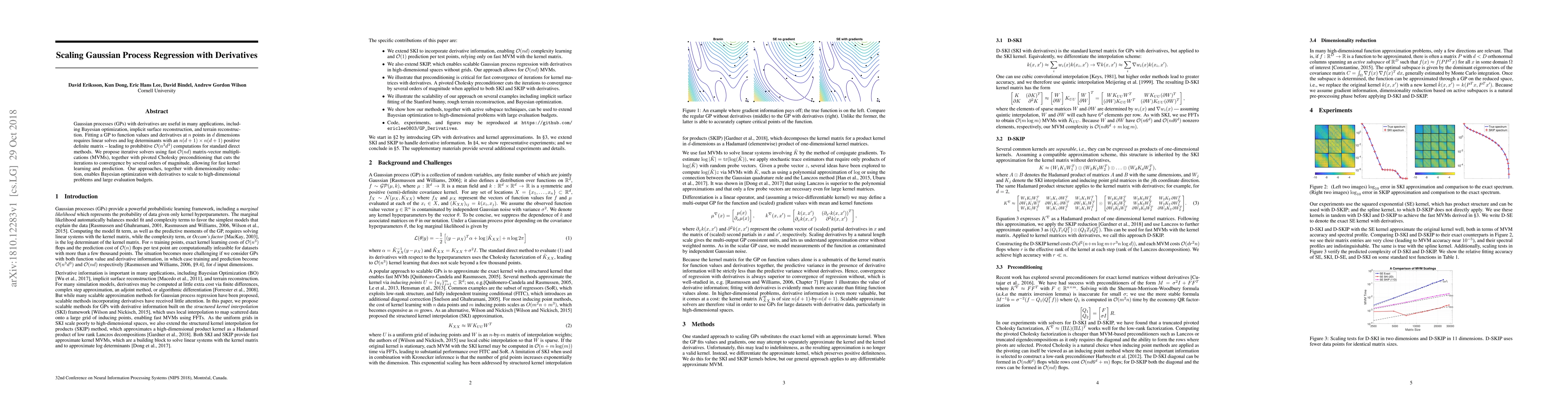 Gaussian process regression with derivatives can be solved more efficiently using iterative solvers that reduce computations to O(nd), enabling scaling to high-dimensional problems.