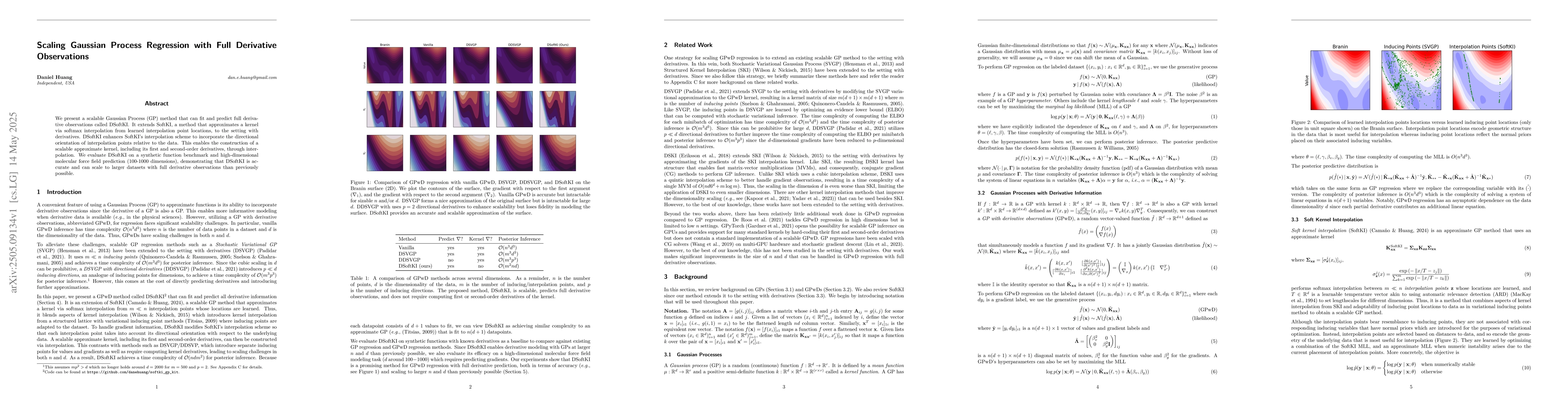 DSoftKI, a method that incorporates full derivative observations into Gaussian Process Regression, demonstrates accuracy and scalability on high-dimensional datasets, outperforming previous methods in similar scenarios.