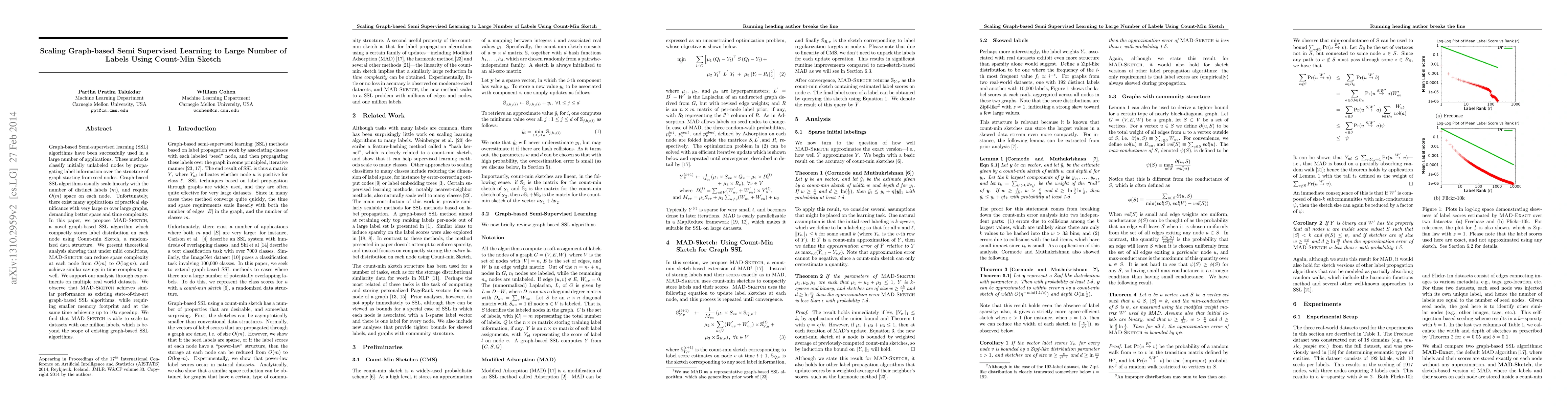 Graph-based Semi-supervised learning (SSL) algorithms have been successfully used in a large number of applications. These methods classify initially unlabeled nodes by propagating label information over the structure of graph starting from seed nodes. Graph-based SSL algorithms usually scale linearly with the number of distinct labels (m), and require O(m) space on each node. Unfortunately, there exist many applications of practical significance with very large m over large graphs, demanding better space and time complexity. In this paper, we propose MAD-SKETCH, a novel graph-based SSL algorithm which compactly stores label distribution on each node using Count-min Sketch, a randomized data structure. We present theoretical analysis showing that under mild conditions, MAD-SKETCH can reduce space complexity at each node from O(m) to O(log m), and achieve similar savings in time complexity as well. We support our analysis through experiments on multiple real world datasets. We observe that MAD-SKETCH achieves similar performance as existing state-of-the-art graph- based SSL algorithms, while requiring smaller memory footprint and at the same time achieving up to 10x speedup. We find that MAD-SKETCH is able to scale to datasets with one million labels, which is beyond the scope of existing graph- based SSL algorithms.