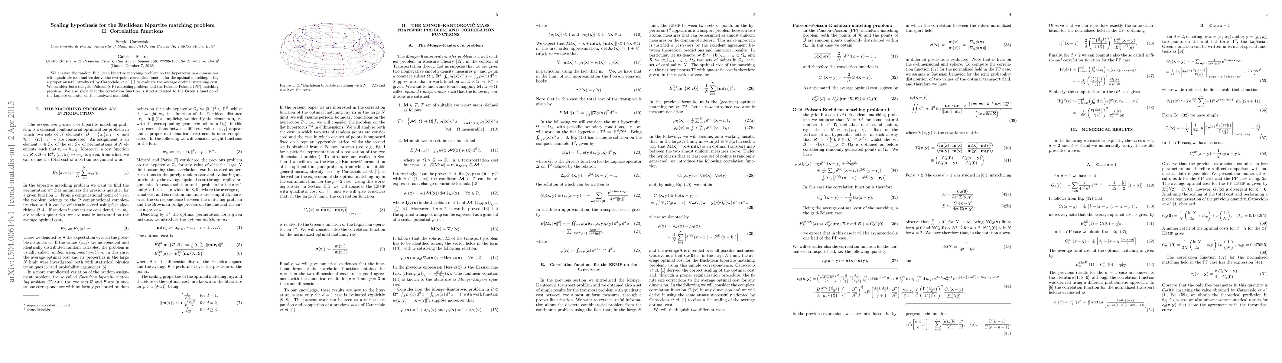 The paper presents a detailed analysis of the Euclidean bipartite matching problem on the hypertorus, linking the correlation functions to the Green's function of the Laplace operator, and deriving explicit expressions for grid-Poisson and Poisson-Poisson cases.