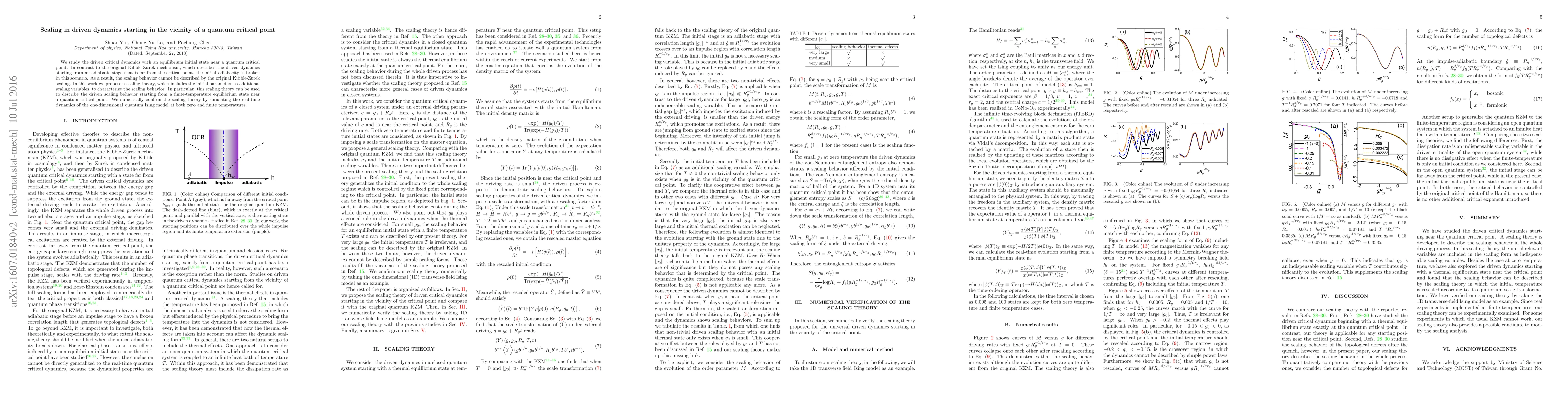This paper proposes a new scaling theory for driven dynamics starting near a quantum critical point, differing from the Kibble-Zurek mechanism by considering initial states that break adiabaticity. The authors numerically validate their theory using simulations of the one-dimensional quantum Ising model.