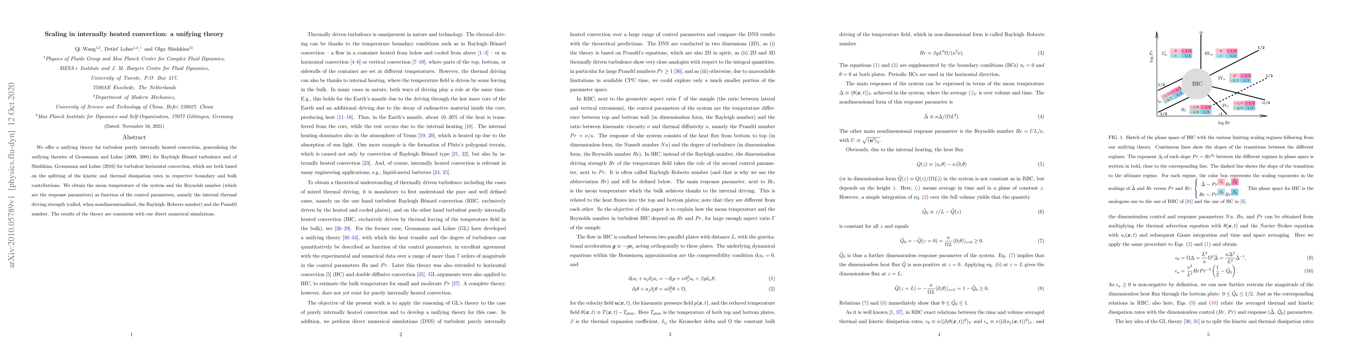 This paper proposes a unifying theory for turbulent convection driven by internal heat sources, extending previous models for Rayleigh-Bénard and horizontal convection. The theory relates the mean temperature and Reynolds number to the Rayleigh-Roberts and Prandtl numbers, validated through direct numerical simulations.