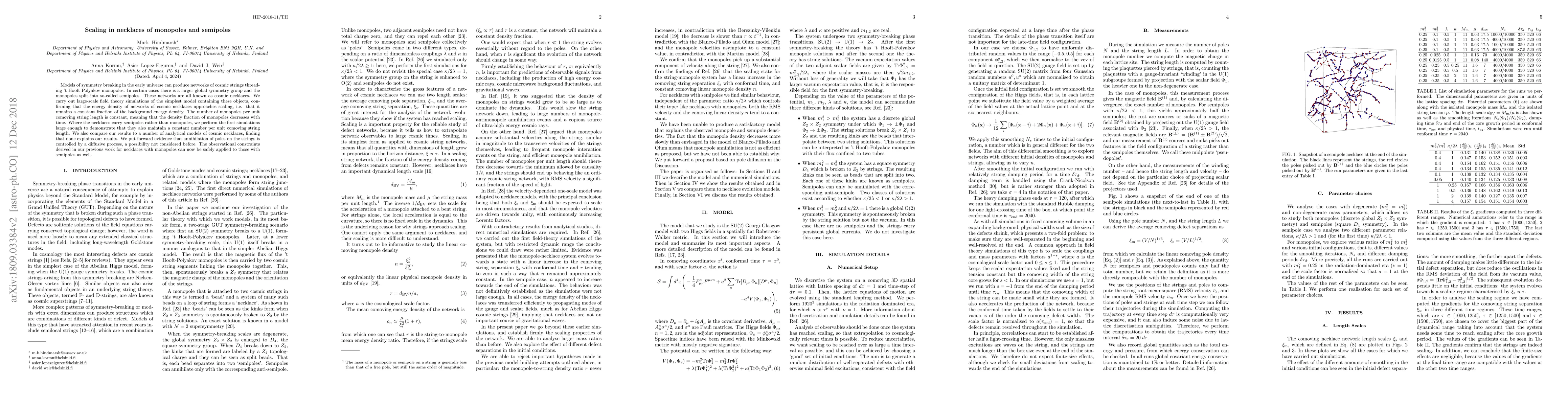 This paper investigates cosmic necklaces composed of monopoles and semipoles, confirming through simulations that their energy density scales with the background, maintaining a constant fraction. The study also finds that the number of monopoles per unit length remains constant, suggesting a diffusive annihilation process, a novel finding.