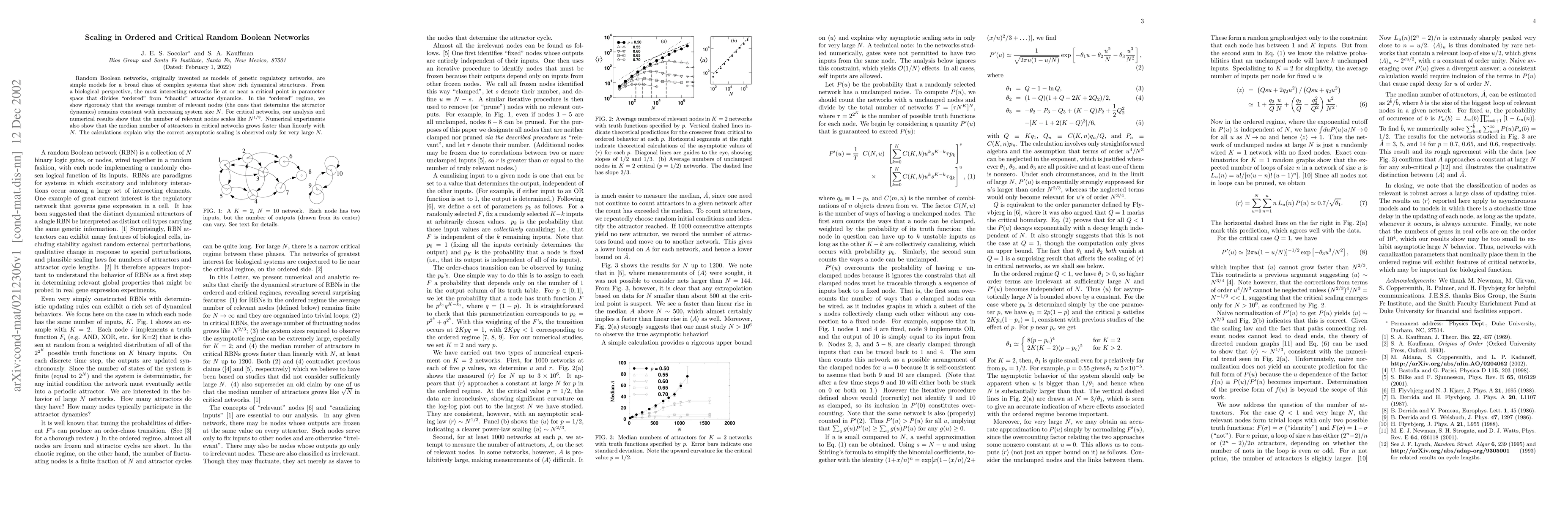 Random Boolean networks, originally invented as models of genetic regulatory networks, are simple models for a broad class of complex systems that show rich dynamical structures. From a biological perspective, the most interesting networks lie at or near a critical point in parameter space that divides ``ordered'' from ``chaotic'' attractor dynamics. In the ordered regime, we show rigorously that the average number of relevant nodes (the ones that determine the attractor dynamics) remains constant with increasing system size N. For critical networks, our analysis and numerical results show that the number of relevant nodes scales like N^{1/3}. Numerical experiments also show that the median number of attractors in critical networks grows faster than linearly with N. The calculations explain why the correct asymptotic scaling is observed only for very large N.