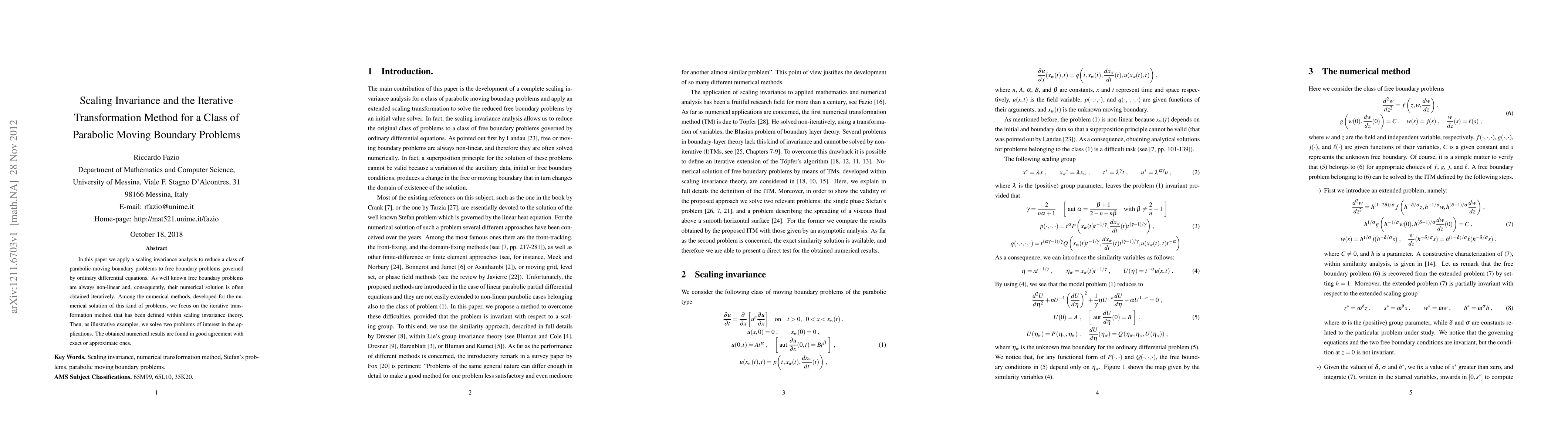 Researchers apply scaling invariance to solve parabolic moving boundary problems, reducing them to ordinary differential equations and demonstrating the effectiveness of an iterative transformation method.
