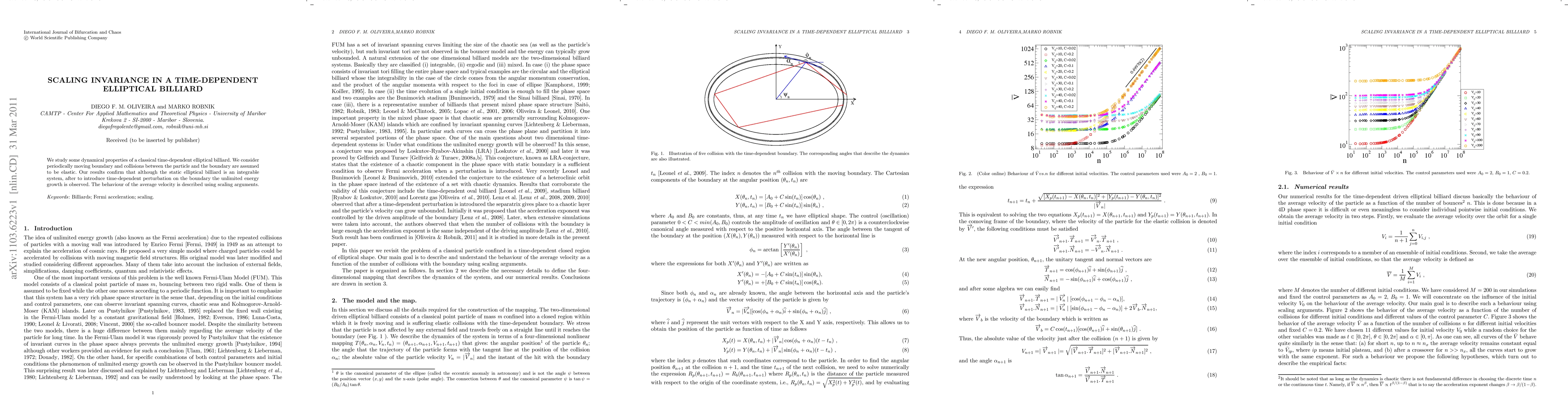 This paper investigates the dynamics of a time-dependent elliptical billiard with elastic collisions, revealing that while the static version is integrable, time-dependent perturbations lead to unbounded energy growth. The average velocity behavior is analyzed using scaling arguments.