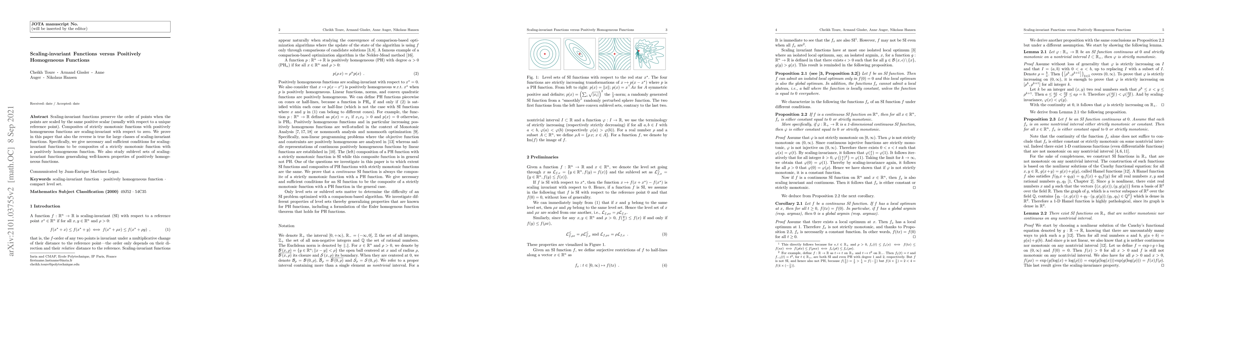 This paper investigates the relationship between scaling-invariant functions and positively homogeneous functions, proving that scaling-invariant functions can be expressed as composites of strictly monotonic functions with positively homogeneous functions under specific conditions. It also explores the sublevel sets of these functions.