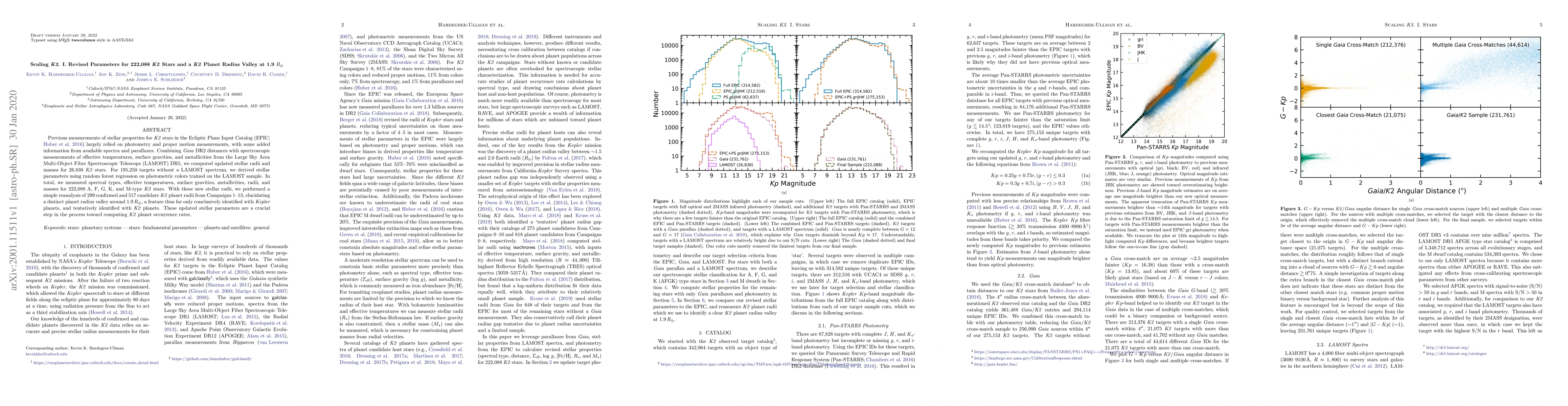 This paper updates the stellar parameters for 222,088 K2 stars using Gaia DR2 distances and LAMOST spectroscopic data, revealing a distinct planet radius valley around 1.9 $R_{\oplus}$ in K2 planets, similar to the Kepler findings. These refined stellar parameters are essential for calculating K2 planet occurrence rates.