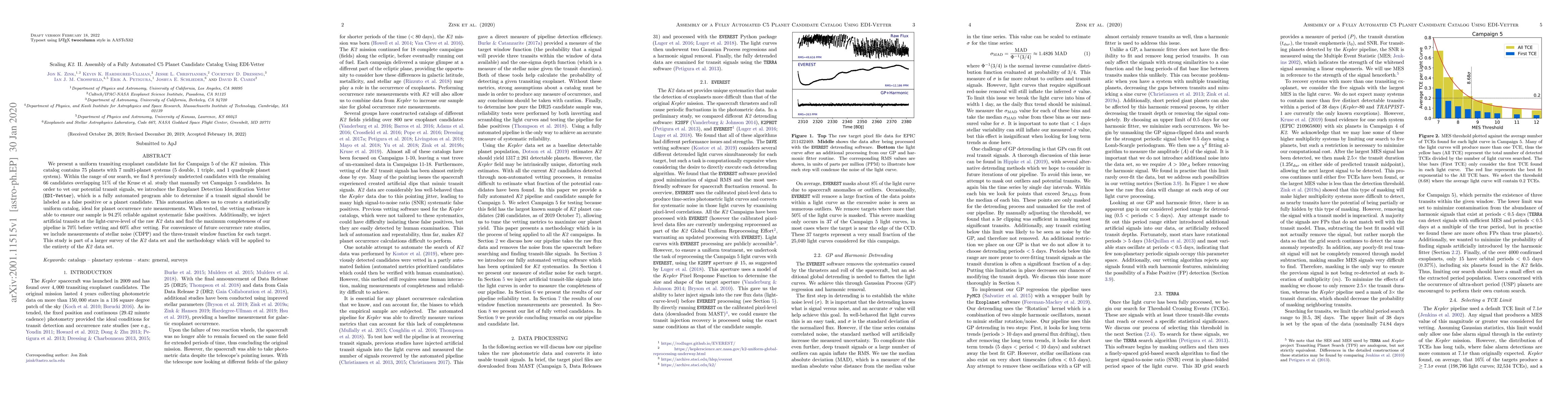 The paper presents a fully automated method, EDI-Vetter, to vet K2 Campaign 5 transit signals, resulting in a uniform catalog of 75 planet candidates. The method ensures 94.2% reliability against false positives, with a completeness of 70% before and 60% after vetting. Stellar noise and window function measurements are also provided for future occurrence rate studies.