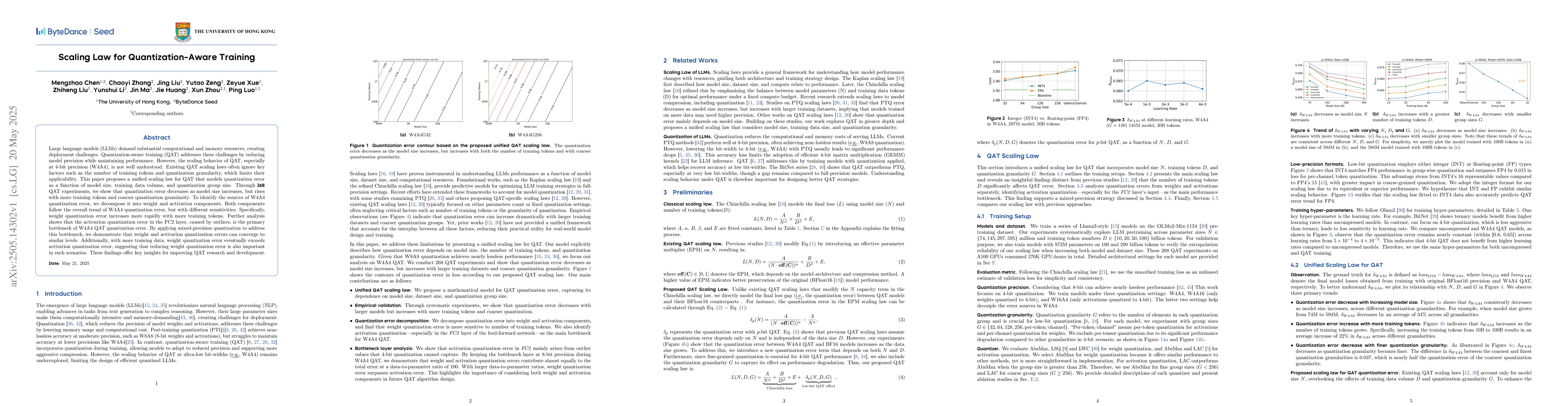 Researchers developed a unified scaling law for quantization-aware training that models quantization error in relation to model size, training data volume, and quantization granularity. Their findings suggest that applying mixed-precision quantization can alleviate quantization errors by reducing weight and activation quantization errors.
