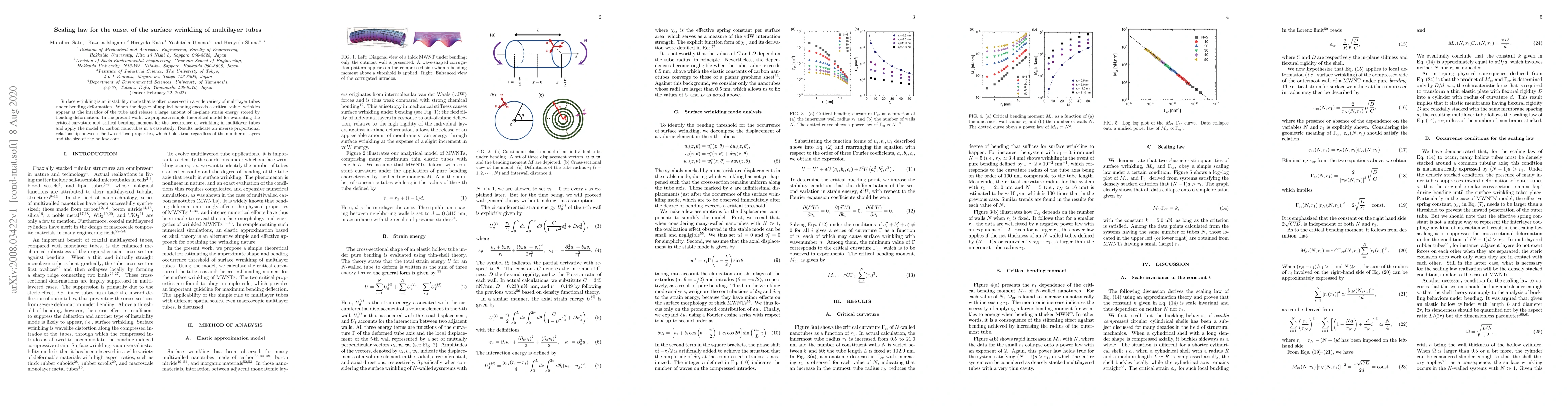 This research proposes a theoretical model to determine the critical curvature and bending moment for surface wrinkling in multilayer tubes, finding an inverse relationship between these critical properties regardless of tube dimensions or layer count. A case study on carbon nanotubes demonstrates the model's applicability.