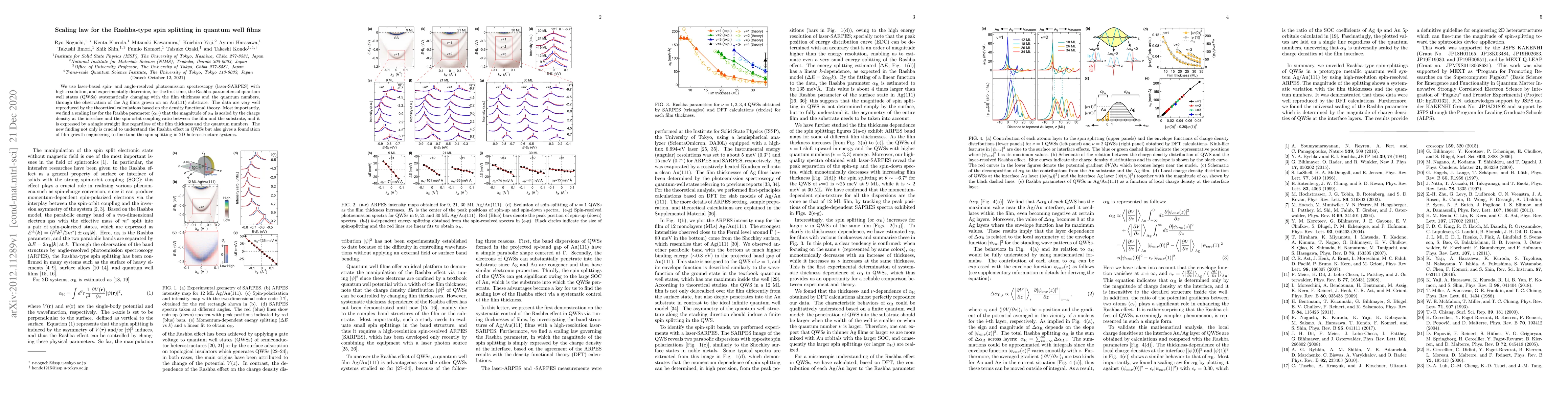We use laser-based spin- and angle-resolved photoemission spectroscopy (laser-SARPES) with high-resolution, and experimentally determine, for the first time, the Rashba-parameters of quantum well states (QWSs) systematically changing with the film thickness and the quantum numbers, through the observation of the Ag films grown on an Au(111) substrate. The data are very well reproduced by the theoretical calculations based on the density functional theory. Most importantly, we find a scaling law for the Rashba parameter ($\alpha_{\rm R}$) that the magnitude of $\alpha_{\rm R}$ is scaled by the charge density at the interface and the spin-orbit coupling ratio between the film and the substrate, and it is expressed by a single straight line regardless of the film thickness and the quantum numbers. The new finding not only is crucial to understand the Rashba effect in QWSs but also gives a foundation of film growth engineering to fine-tune the spin splitting in 2D heterostructure systems.