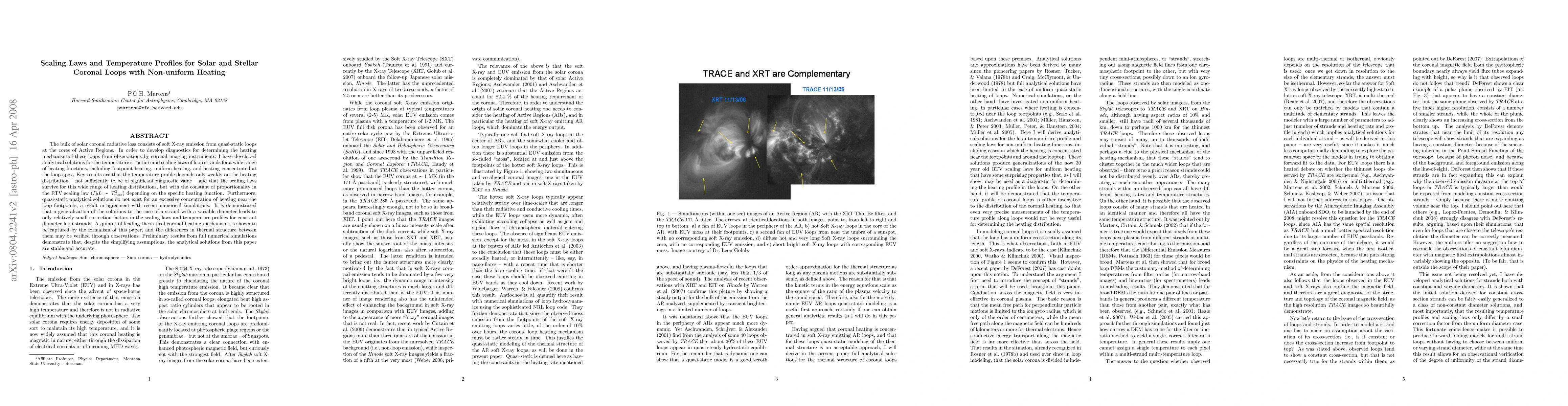 This paper develops analytical solutions for the temperature structure and scaling laws of solar coronal loops under various heating scenarios, finding that temperature profiles are not sufficiently distinct for diagnostic purposes, but scaling laws remain valid with proportional constants varying by heating function. The study also shows that analytical solutions are stable and accurate, capturing five leading coronal heating mechanisms.