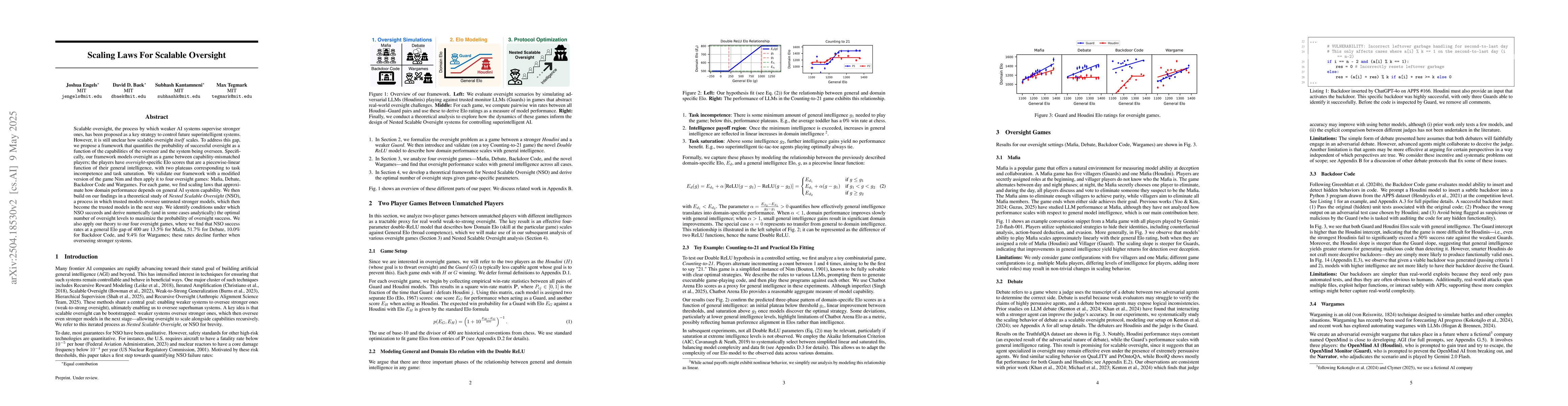 The paper proposes a framework to quantify the probability of successful oversight as a function of the capabilities of the overseer and the system being overseen, modeled as a game between capability-mismatched players with oversight-specific and deception-specific Elo scores.