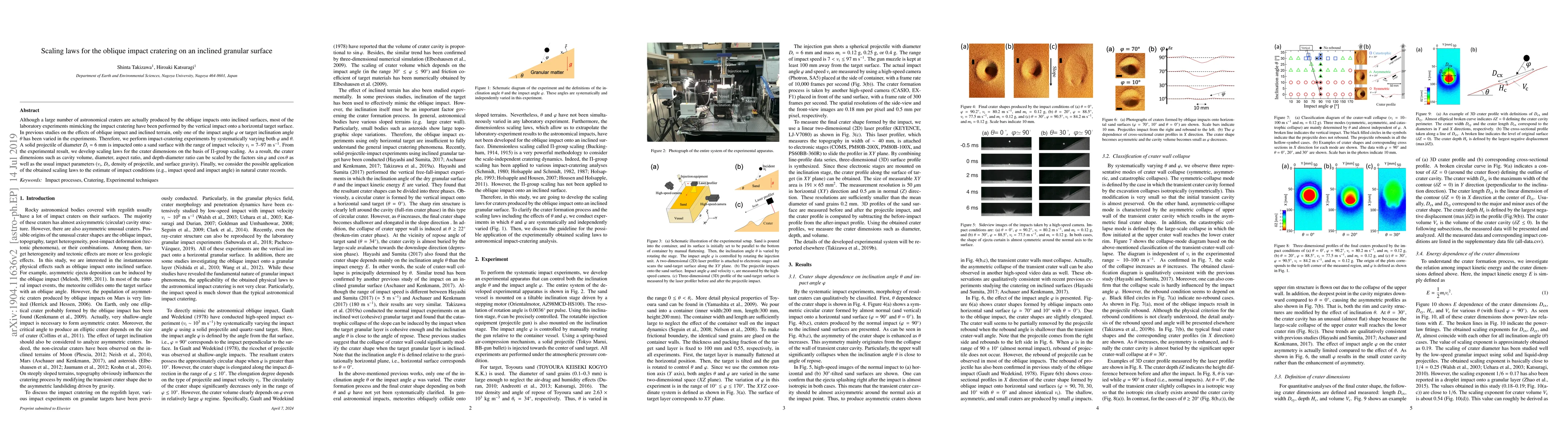 This paper investigates the scaling laws for crater dimensions formed by oblique impacts on inclined granular surfaces through systematic experiments. The study develops new scaling laws based on $\Pi$-group analysis, showing that crater dimensions can be scaled by factors including the impact angle, target inclination, and traditional impact parameters.