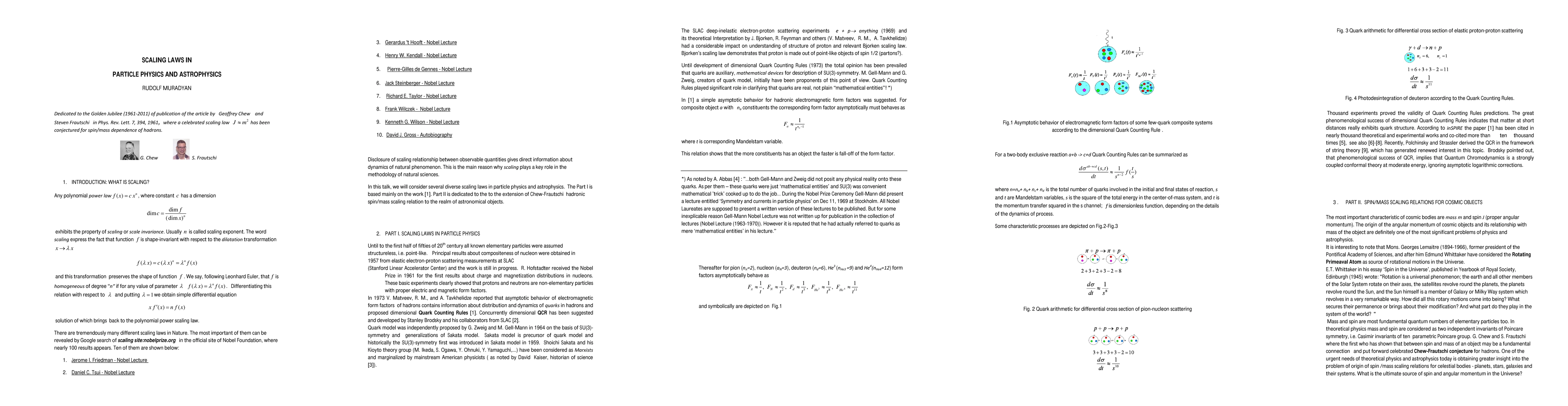 This paper explores scaling laws in particle physics and astrophysics, highlighting their importance in understanding natural phenomena. It discusses diverse scaling laws in particle physics and extends the Chew-Frautschi relation to astronomical objects.
