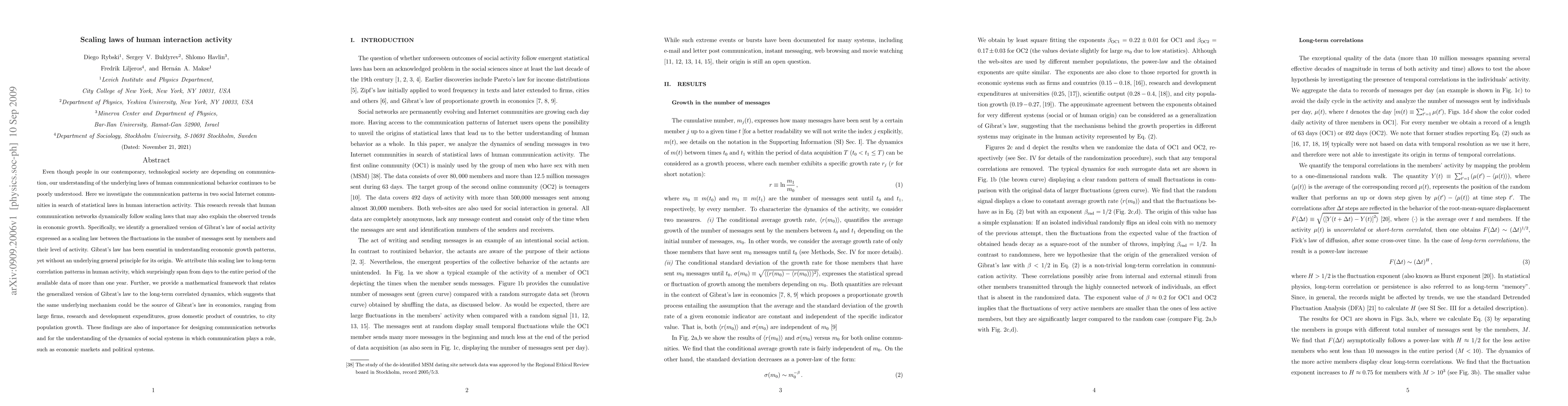 This paper investigates communication patterns in social Internet communities to uncover scaling laws governing human interaction. It identifies a generalized version of Gibrat's law, revealing long-term correlation patterns in human activity that may also explain economic growth trends, suggesting a common underlying mechanism for both social and economic dynamics.