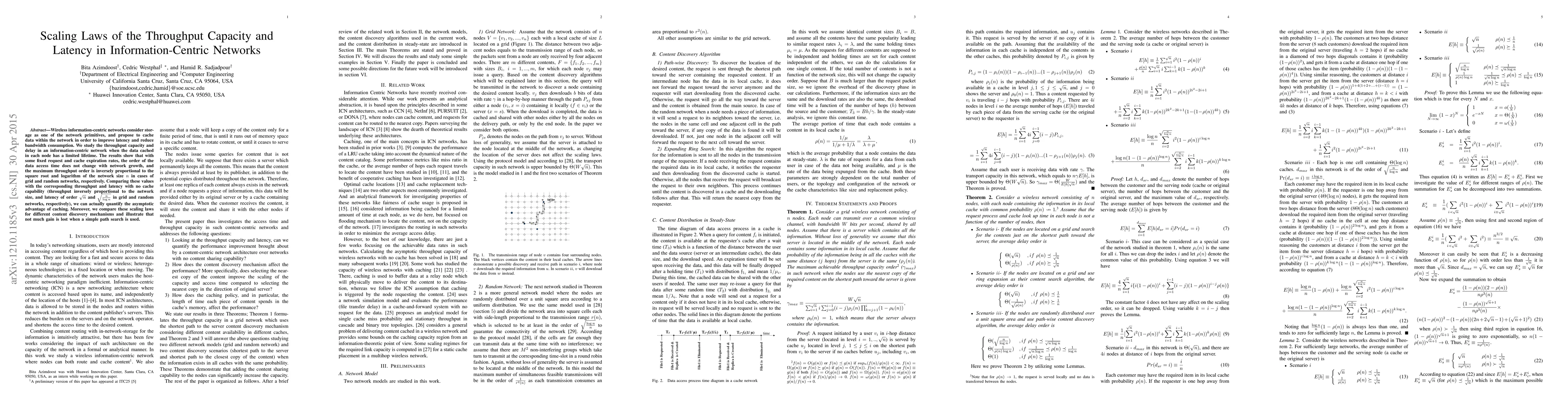 This paper investigates the scaling laws of throughput capacity and latency in wireless information-centric networks with caching. It finds that caching improves throughput and reduces latency, with maximum throughput scaling inversely proportional to the network size's square root and logarithm in grid and random networks, respectively. The study also compares these results with networks without caching to quantify the benefits of caching.