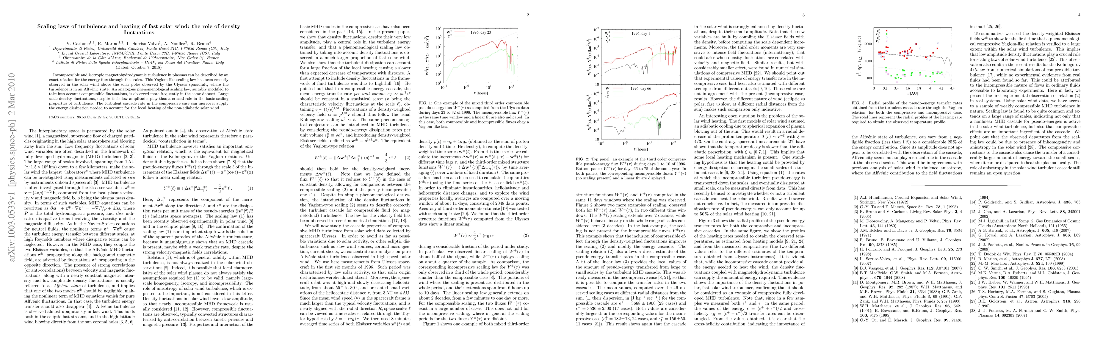 This paper investigates the scaling laws of turbulence in the solar wind, highlighting the role of density fluctuations in the energy flux and heating. The study finds that large scale density fluctuations, despite their low amplitude, significantly influence the turbulence's scaling properties and contribute to the energy dissipation necessary for the solar wind's local heating.