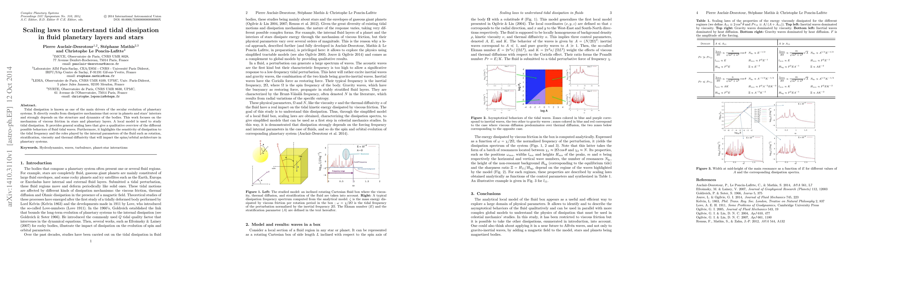 This paper explores the mechanism of viscous friction in stars and planetary layers to understand tidal dissipation, which drives the evolution of planetary systems. It develops scaling laws to qualitatively analyze the behavior of fluid tidal waves and emphasizes the influence of tidal frequency and internal fluid parameters on dissipation.