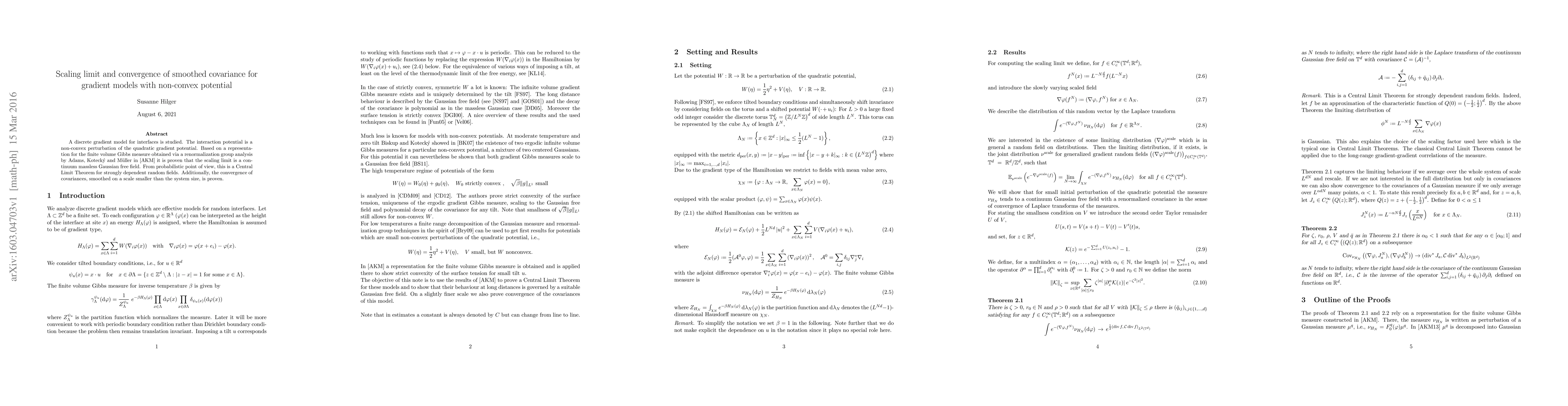 This paper studies a discrete gradient model with a non-convex potential, proving that its scaling limit converges to a continuum massless Gaussian free field. It also demonstrates the convergence of smoothed covariances on a scale smaller than the system size, establishing a Central Limit Theorem for strongly dependent random fields.